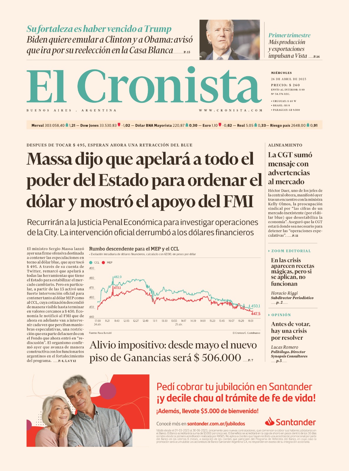 Portadas de diarios nacionales | Miércoles 26 de abril