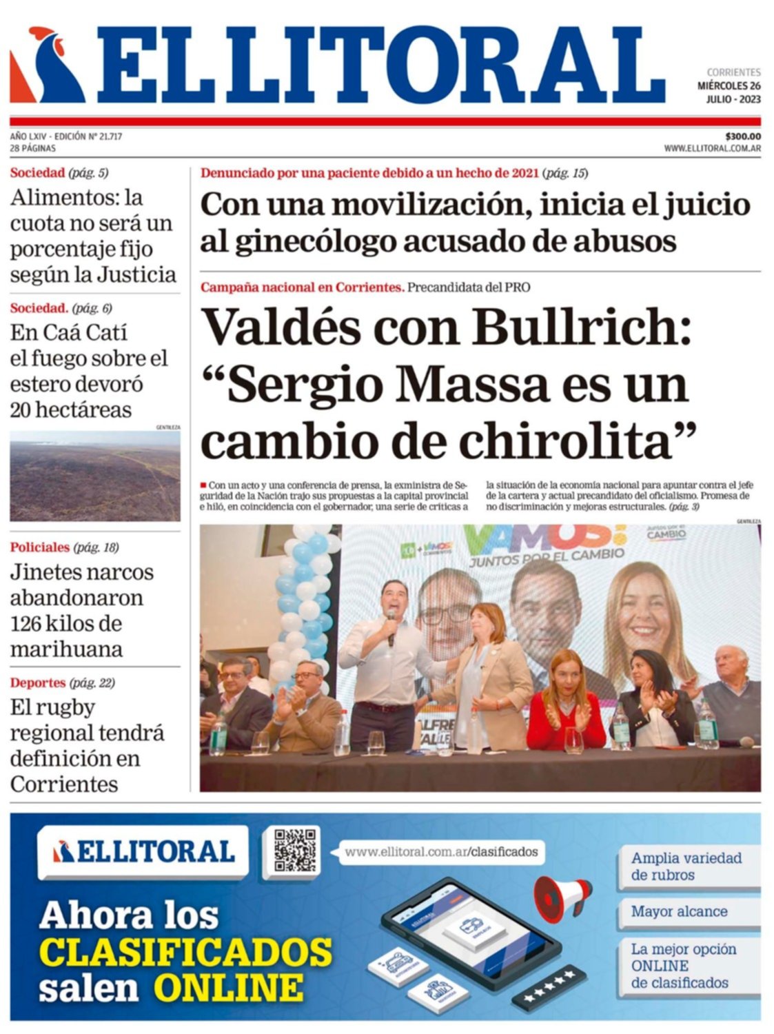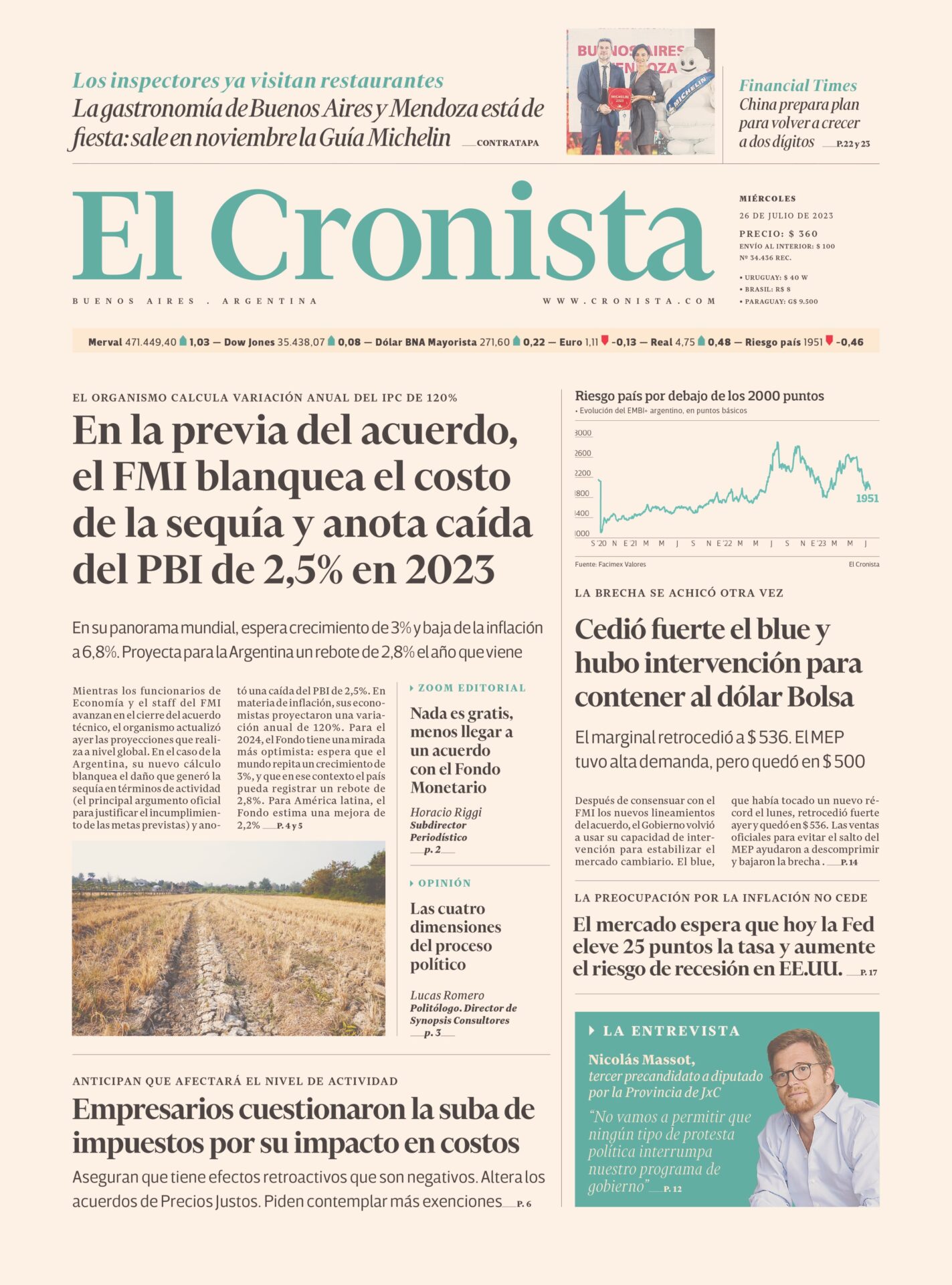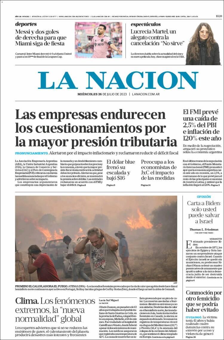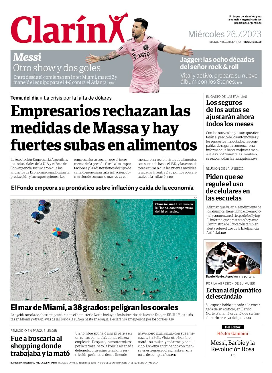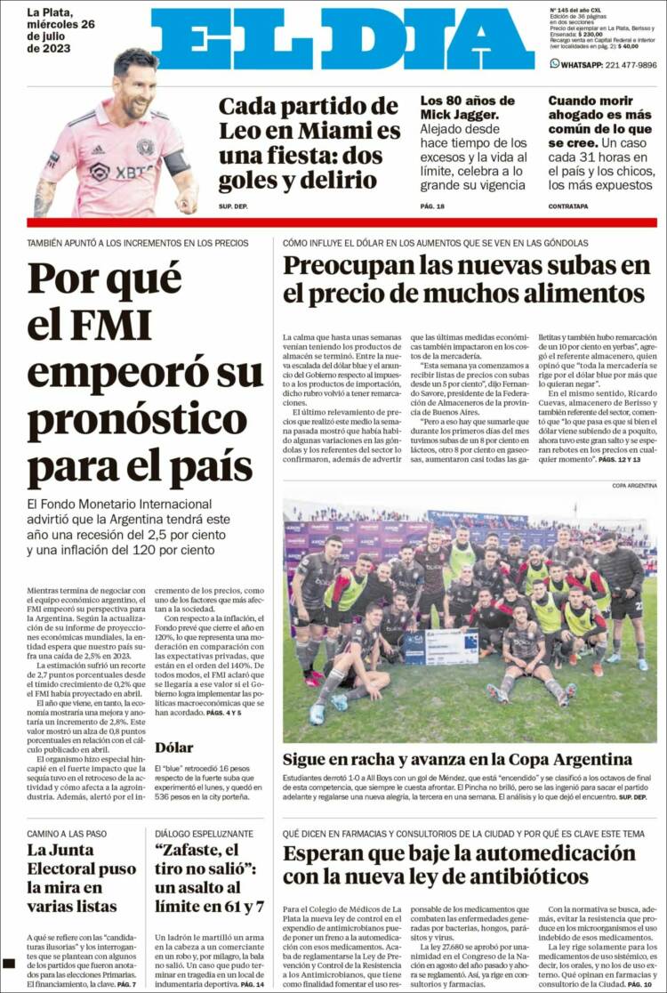 Portadas de diarios nacionales | Miércoles 26 de julio