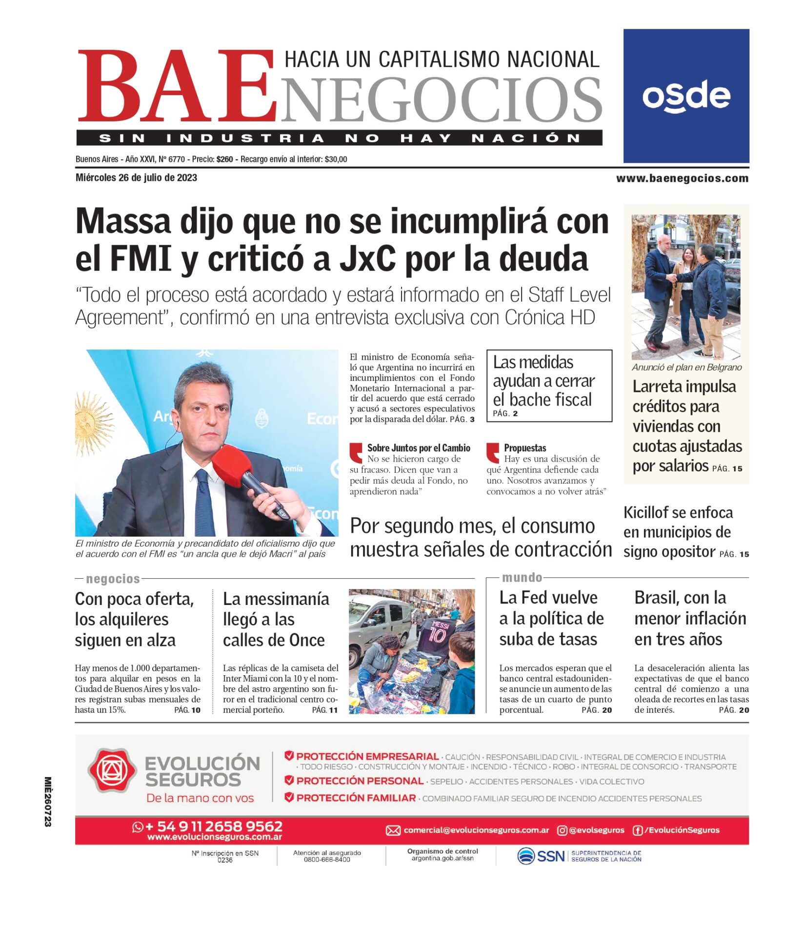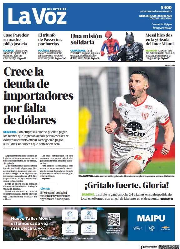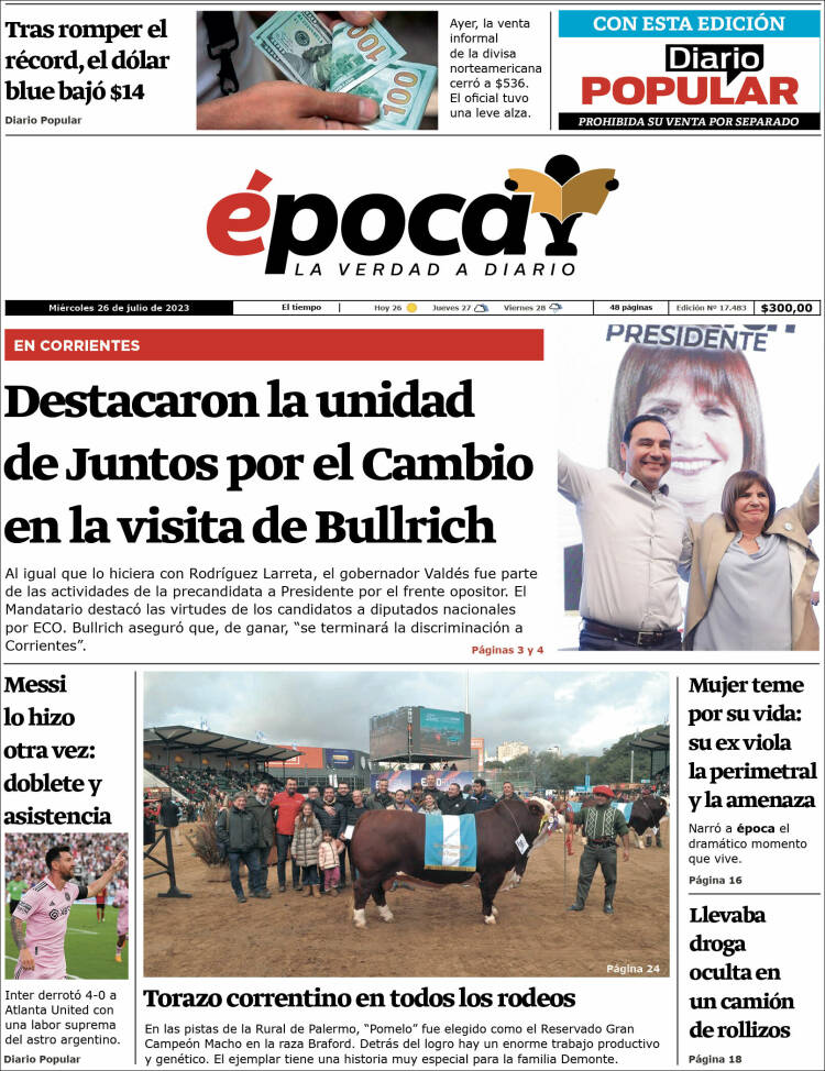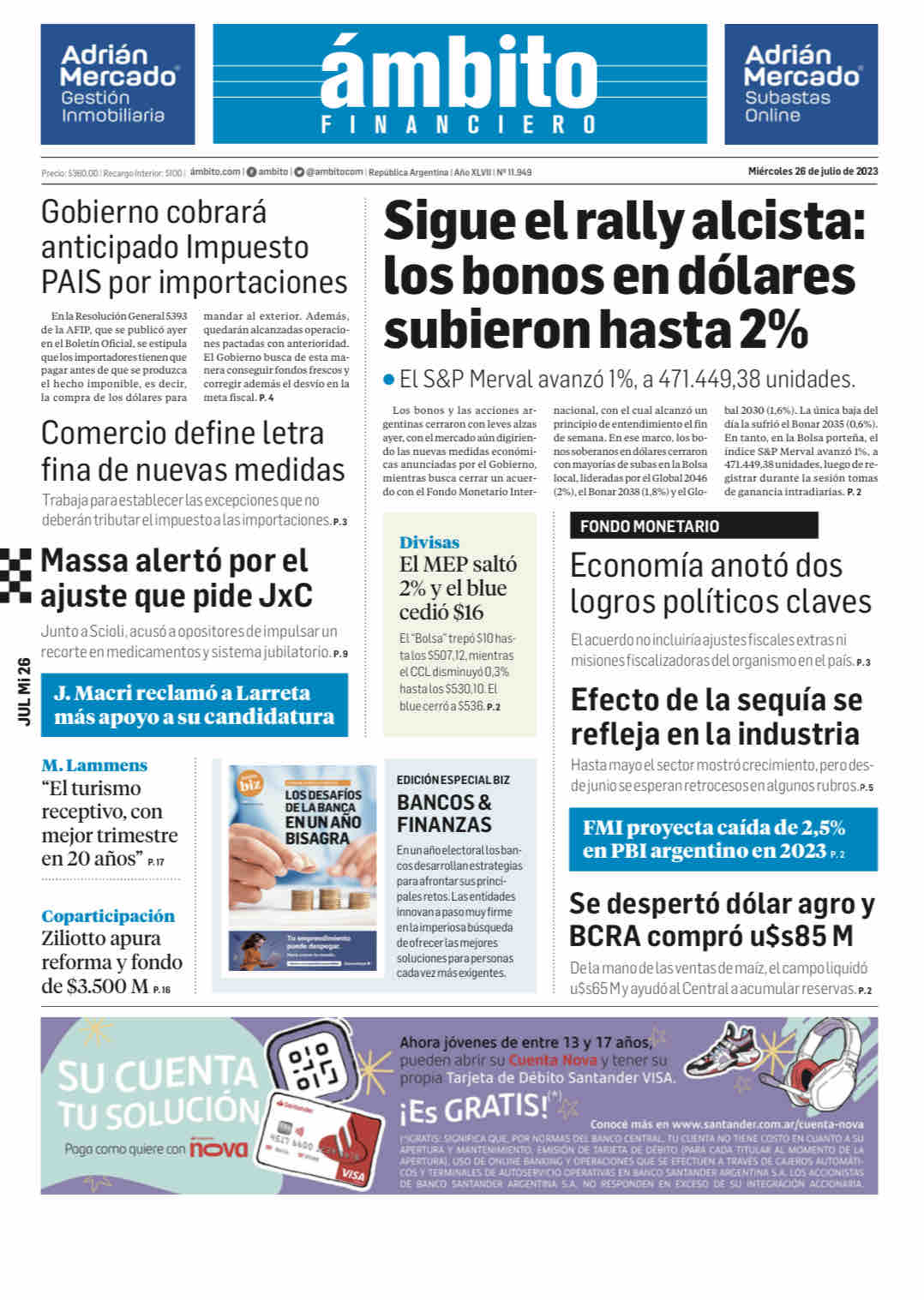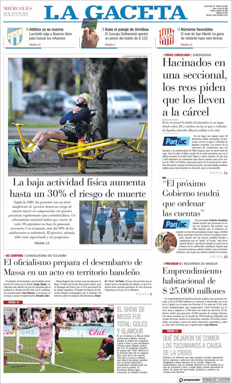 Portadas de diarios nacionales | Miércoles 26 de julio