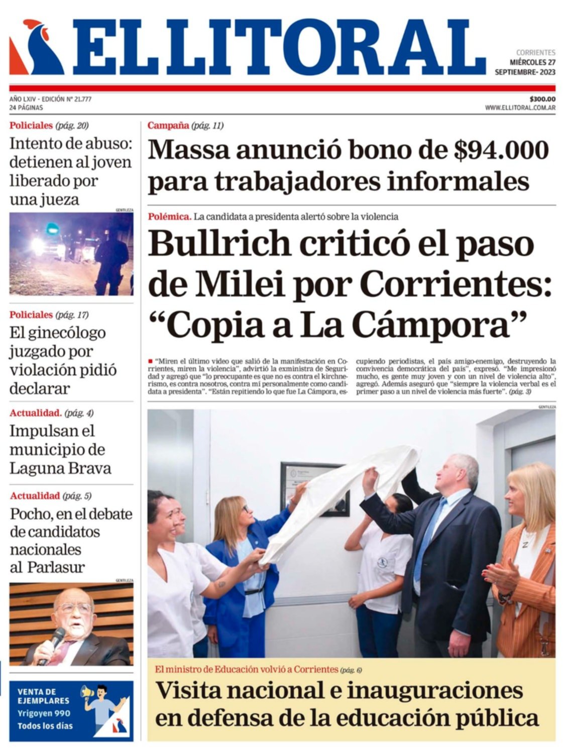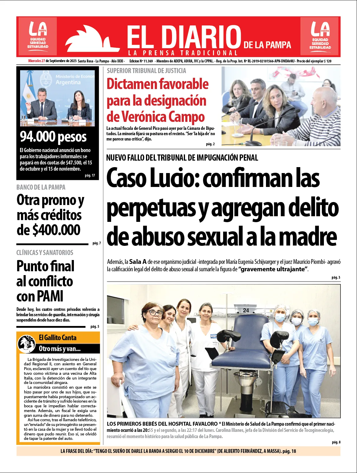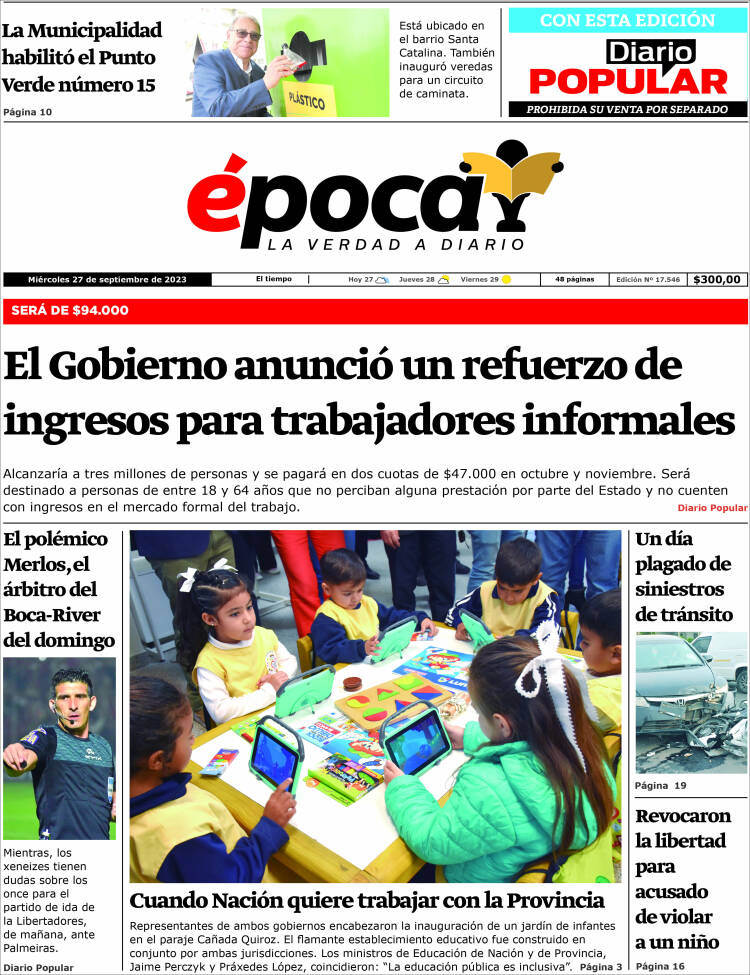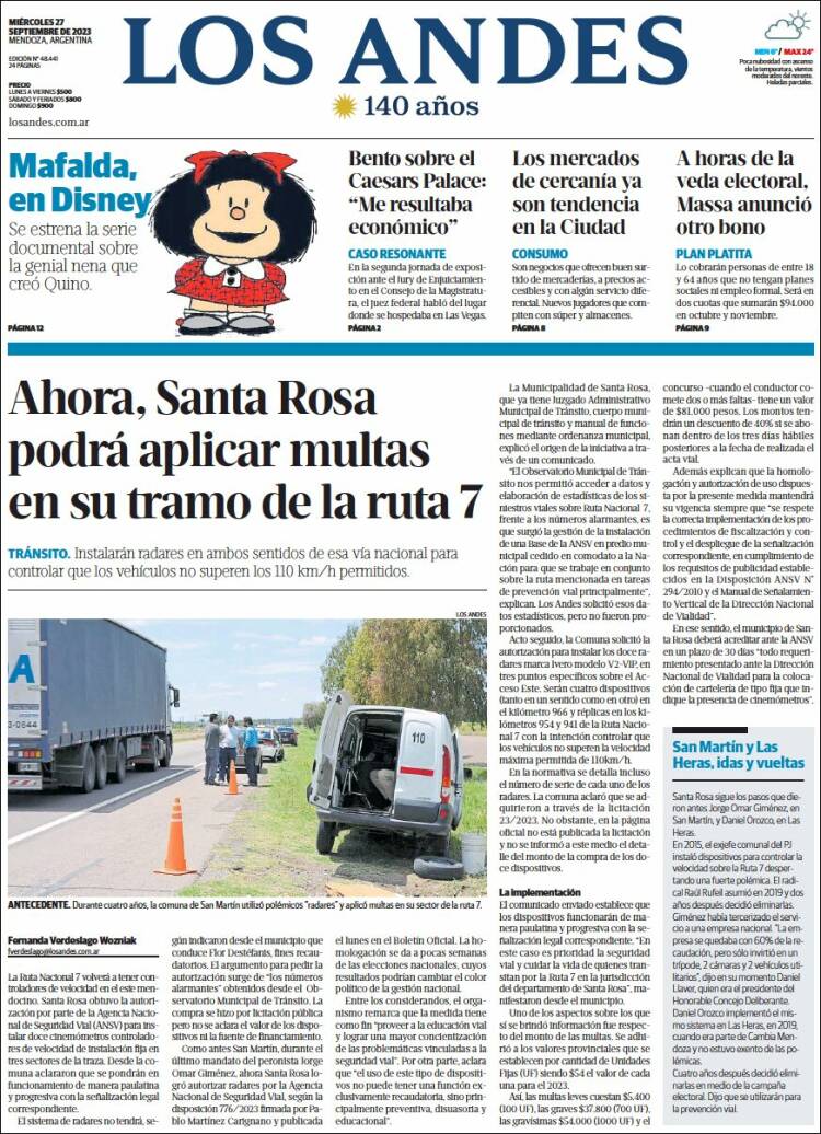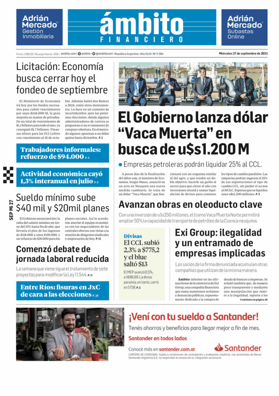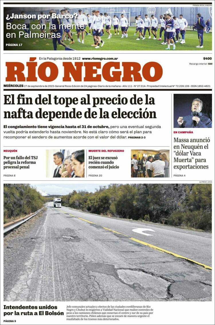 Portadas de diarios nacionales | Miércoles 27 de septiembre
