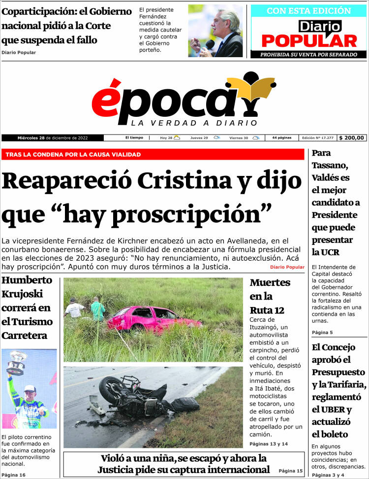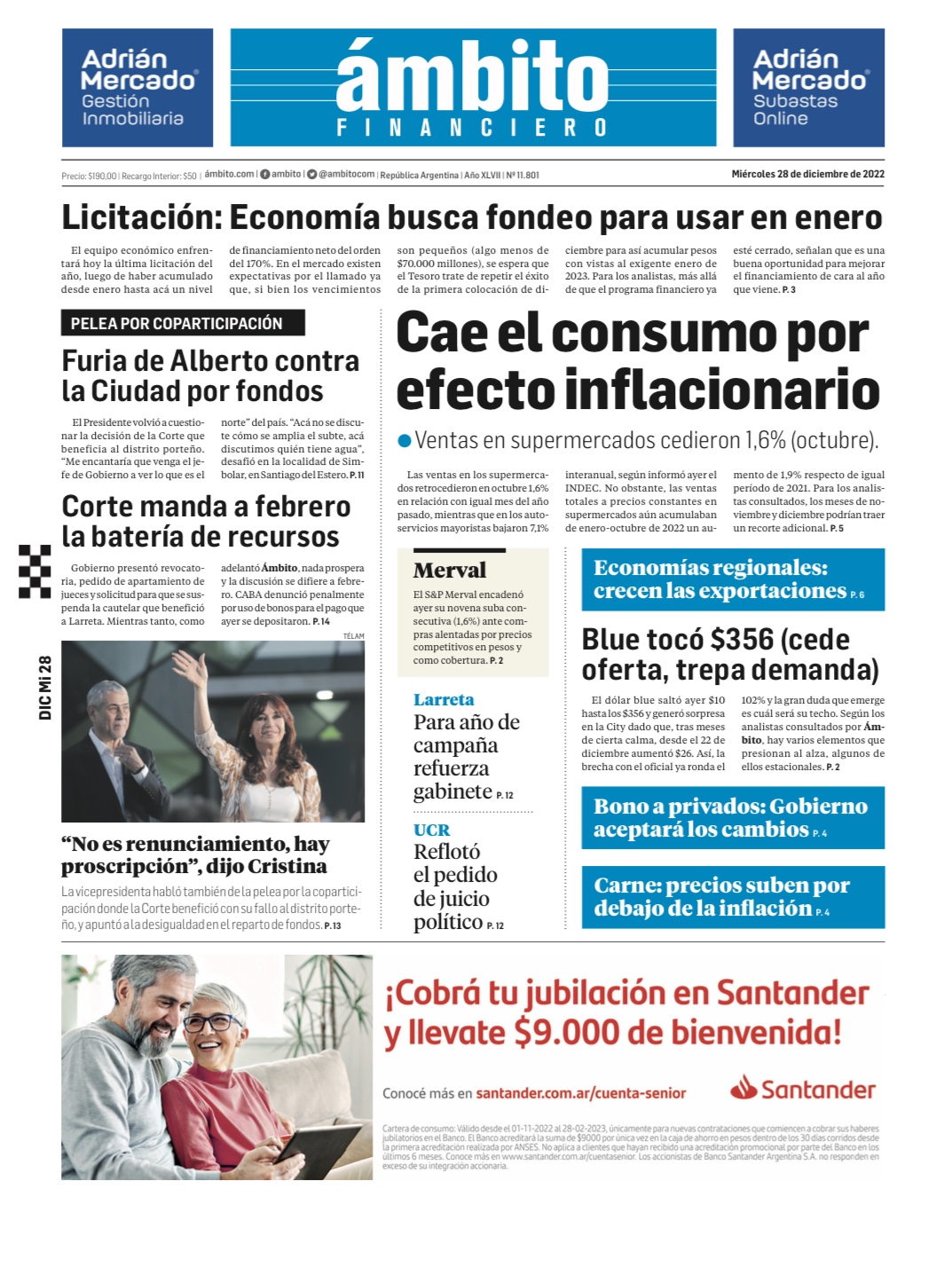 Portadas de diarios nacionales | Miércoles 28 de diciembre
