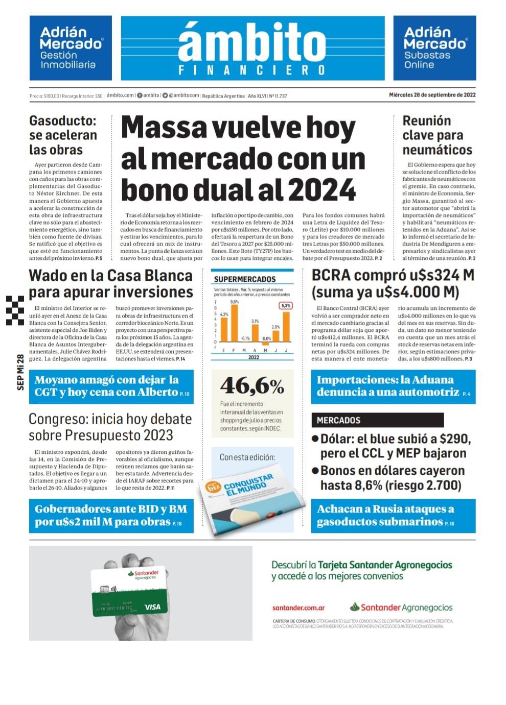 Portadas de diarios nacionales | Miércoles 28 de septiembre