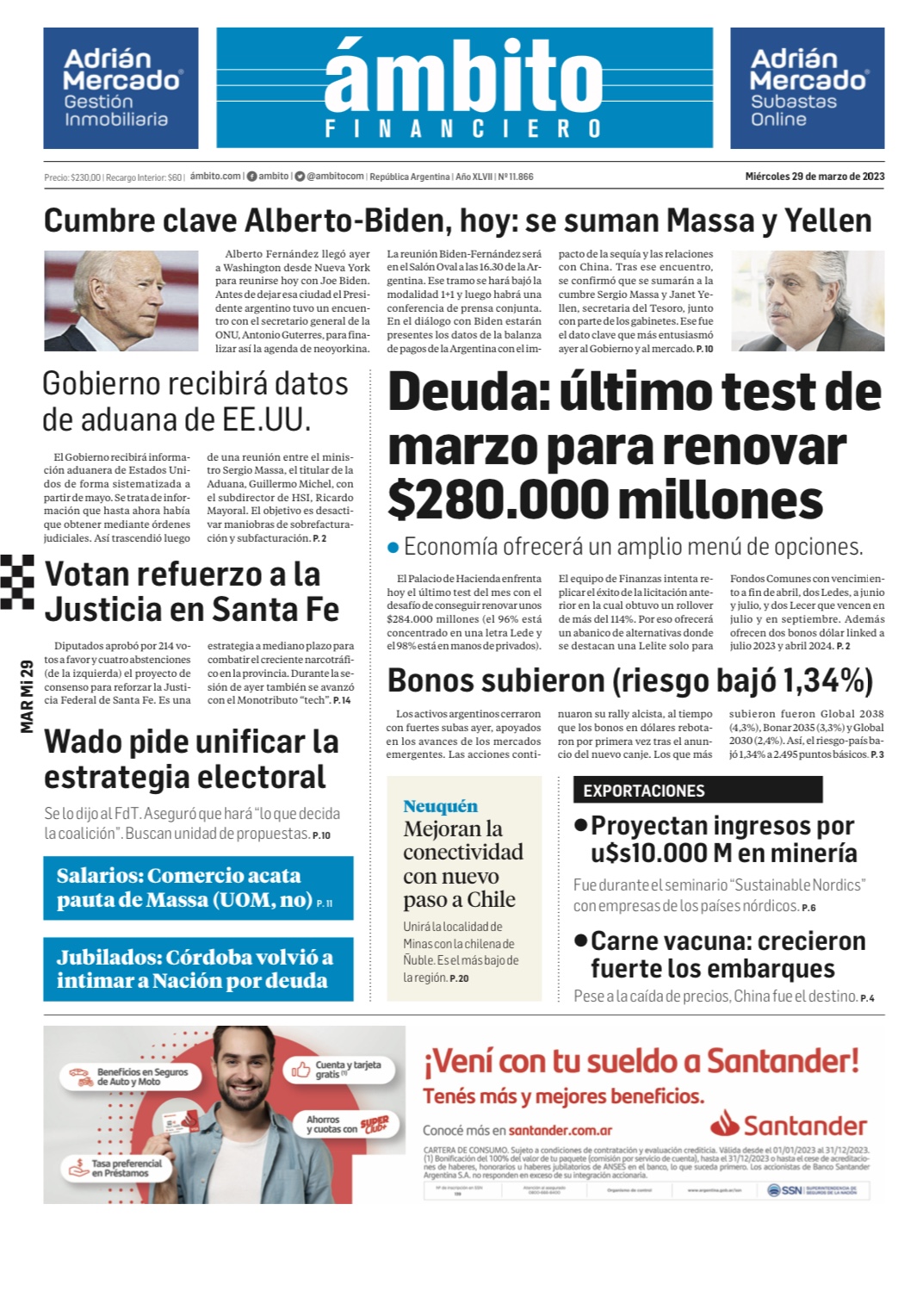 Portadas de diarios nacionales | Miércoles 29 de marzo
