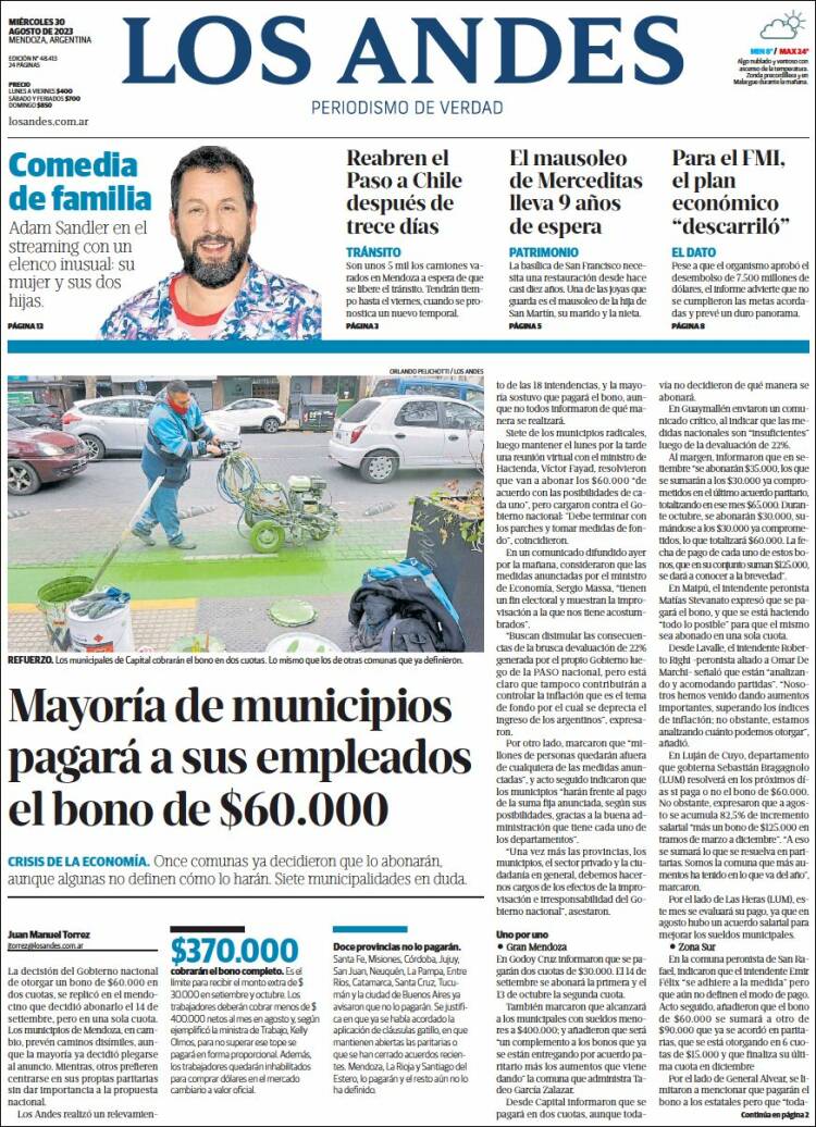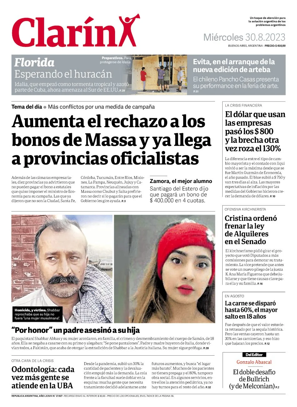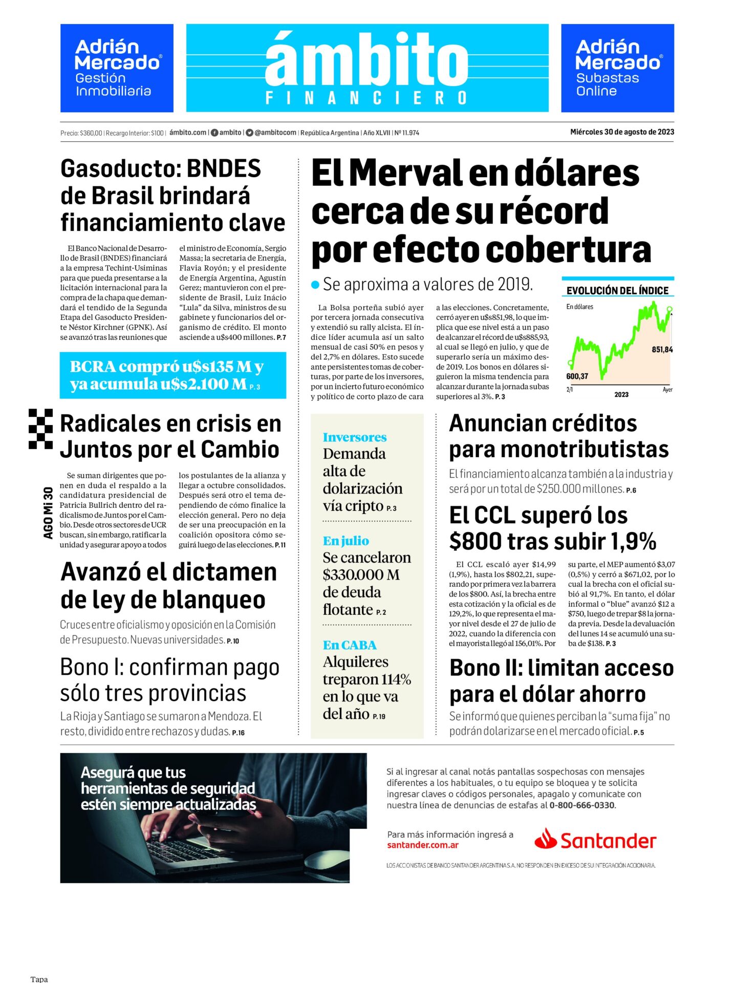 Portadas de diarios nacionales | Miércoles 30 de agosto