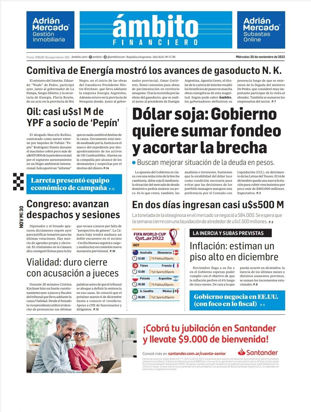 Portadas de diarios nacionales | Miércoles 30 de noviembre