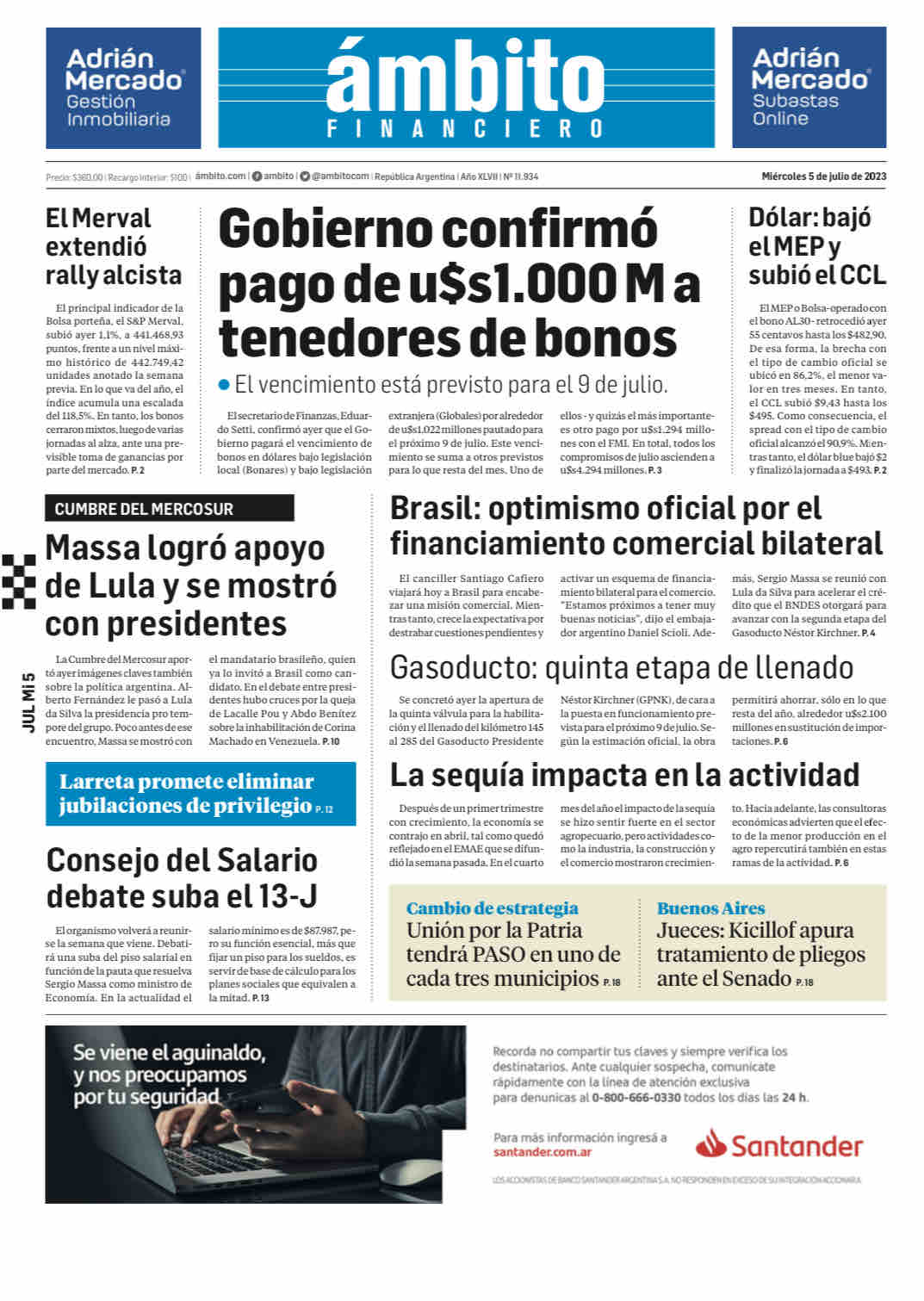 Portadas de diarios nacionales | Miércoles 5 de julio