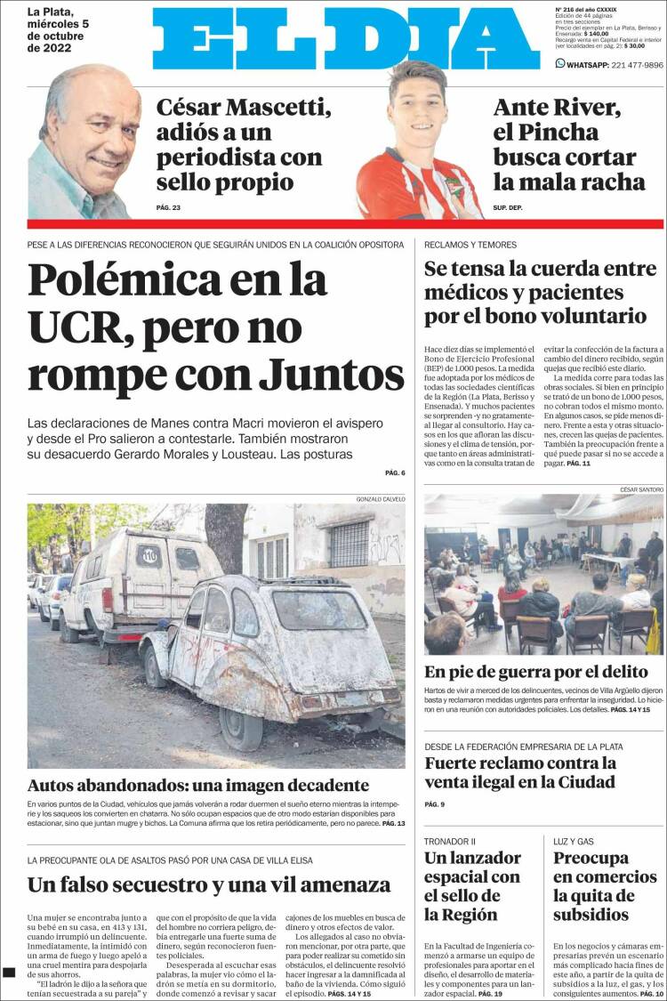 Portadas de diarios nacionales | Miércoles 5 de octubre