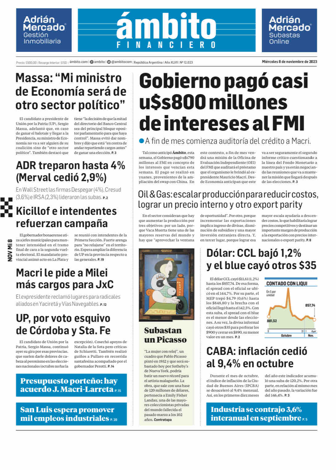 Portadas de diarios nacionales | Miércoles 8 de noviembre