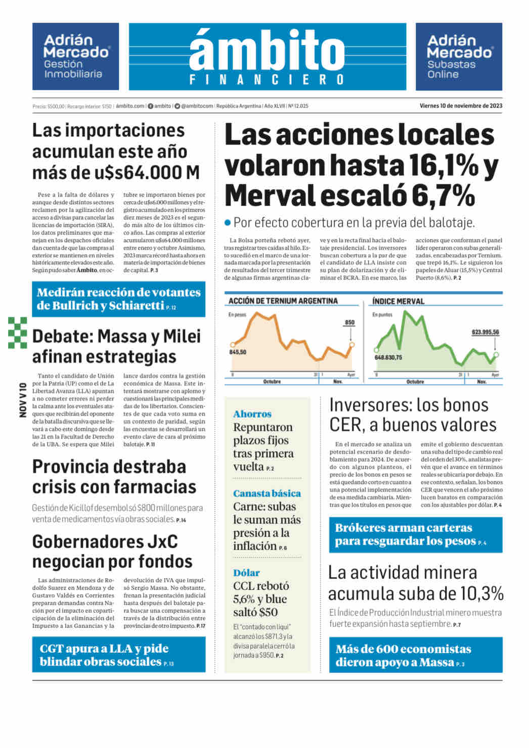Portadas de diarios nacionales | Viernes 10 de noviembre