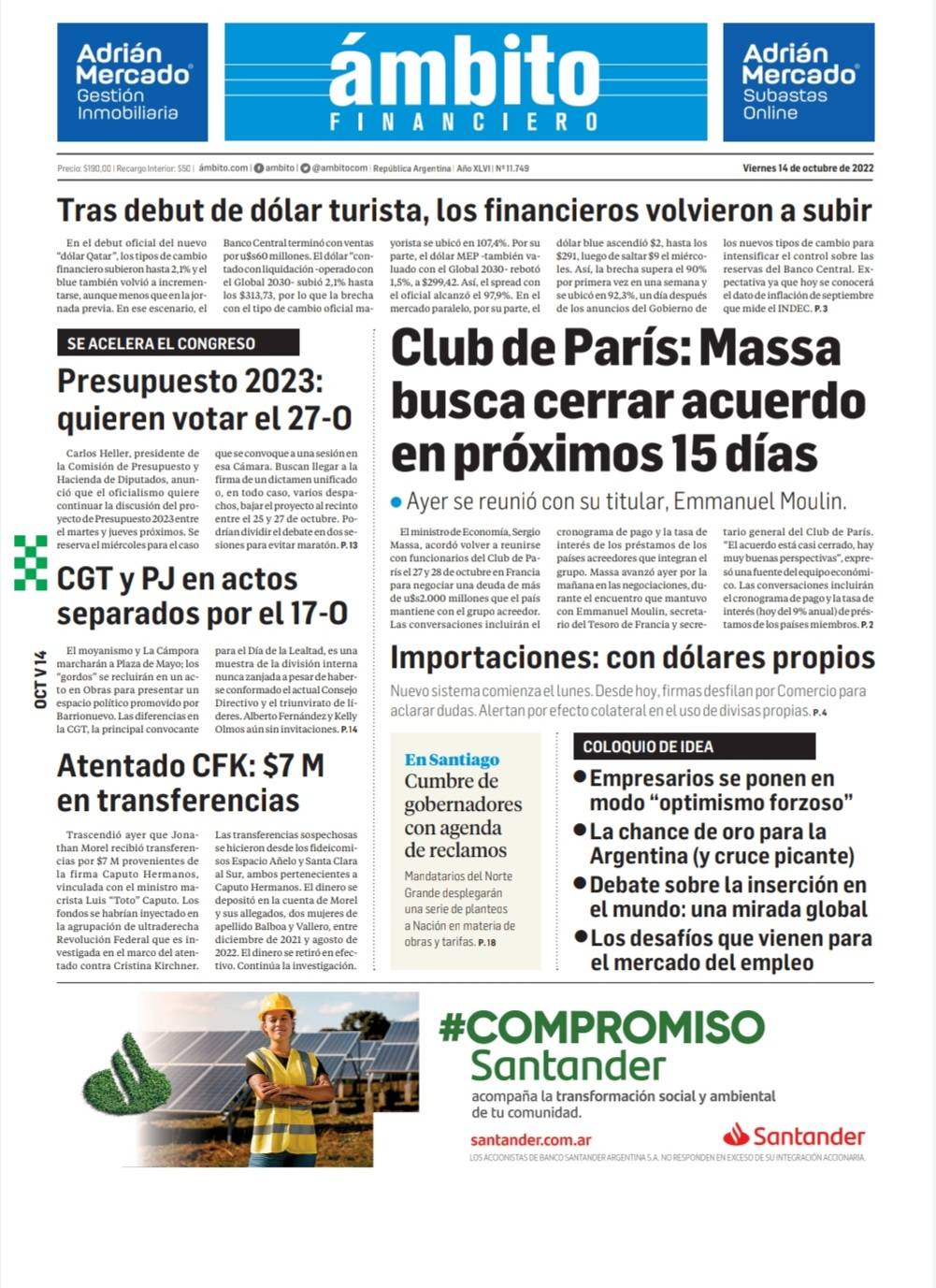 Portadas de diarios nacionales | Viernes 14 de octubre