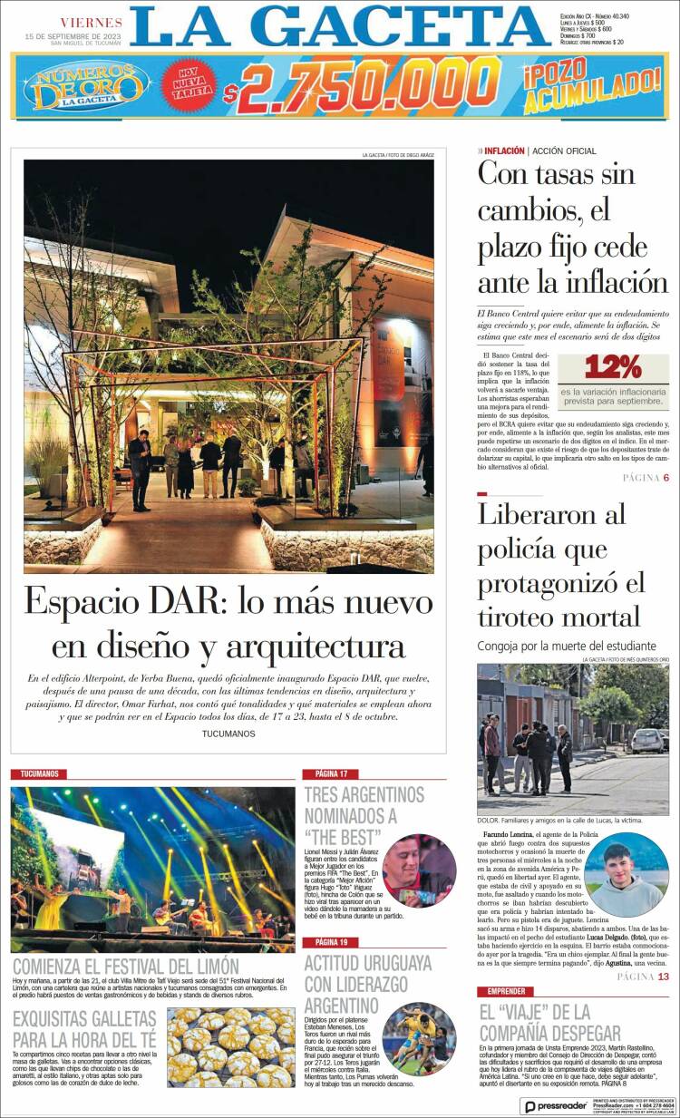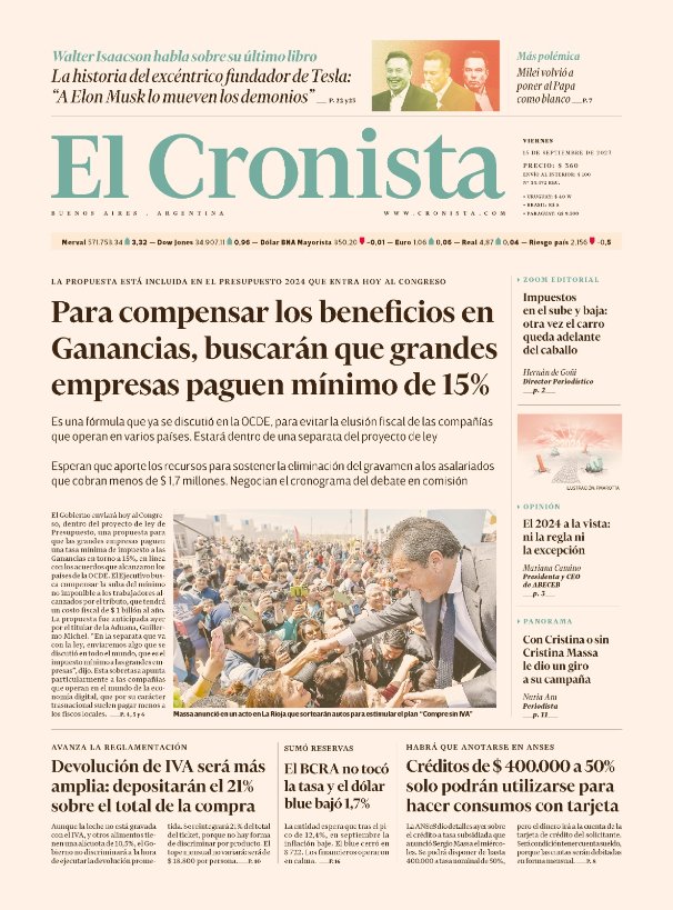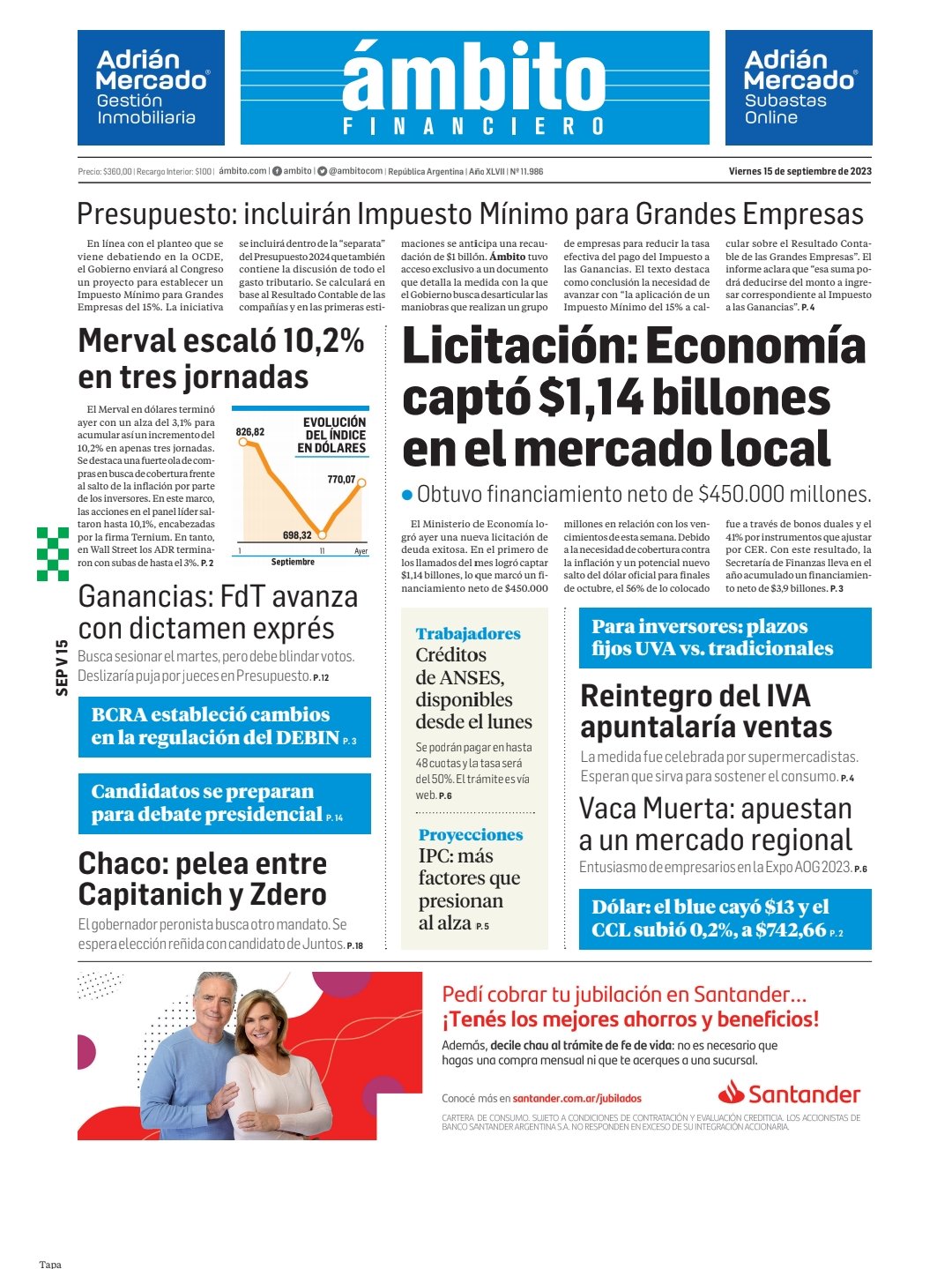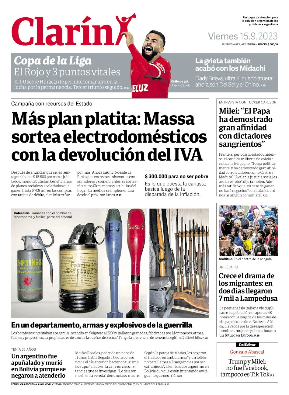 Portadas de diarios nacionales | Viernes 15 de septiembre