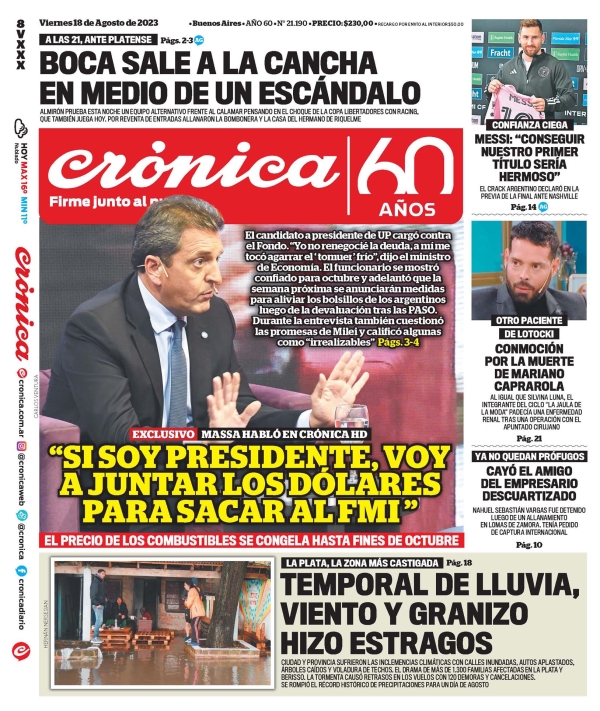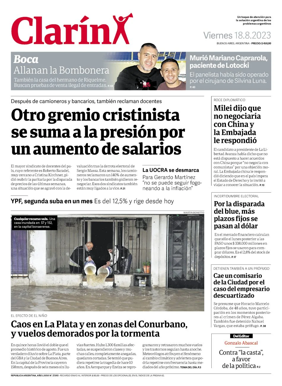 Portadas de diarios nacionales | Viernes 18 de agosto