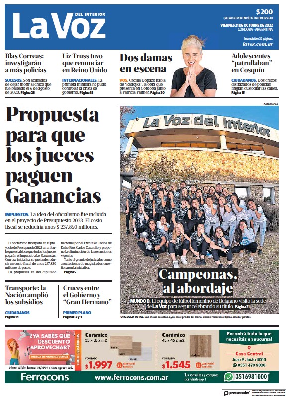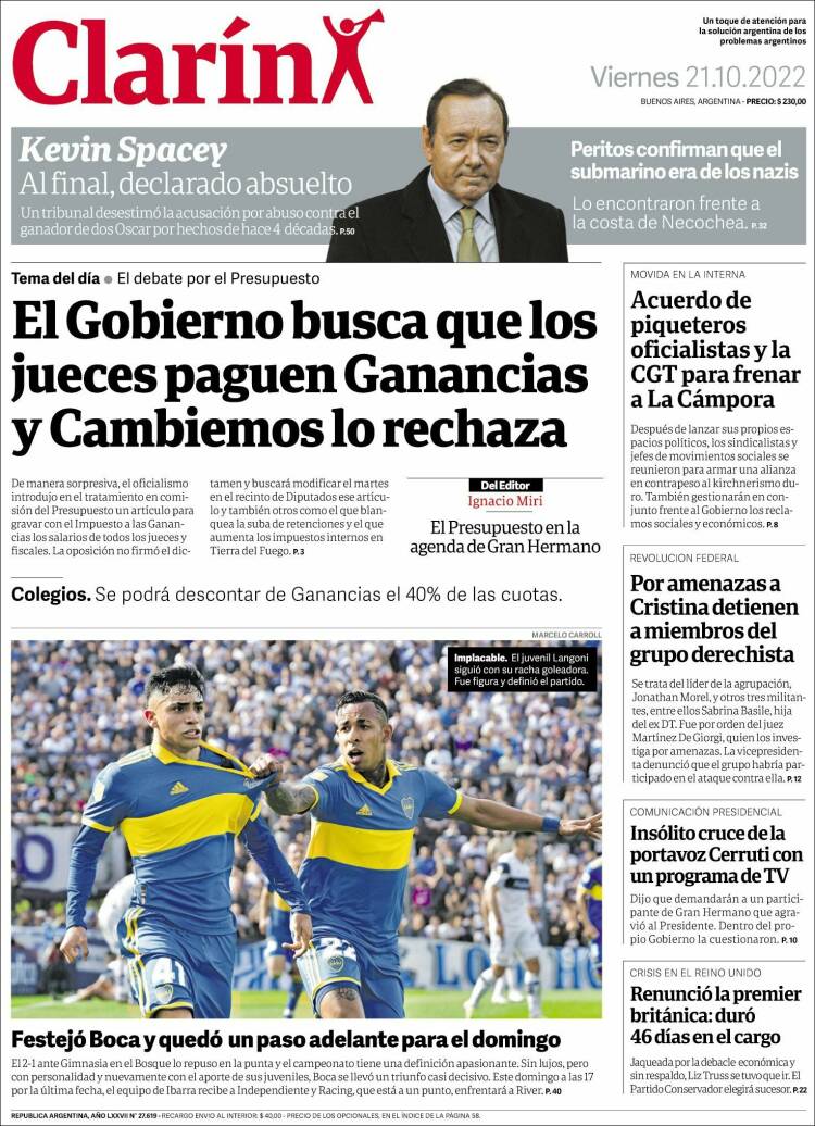 Portadas de diarios nacionales | Viernes 21 de octubre