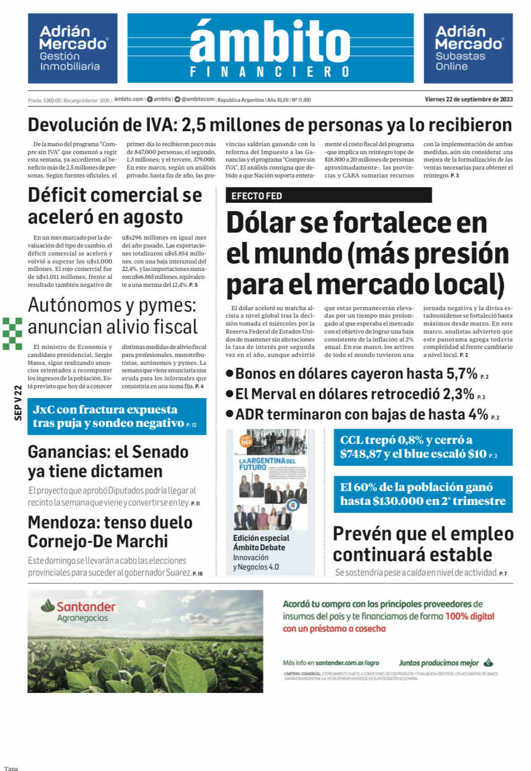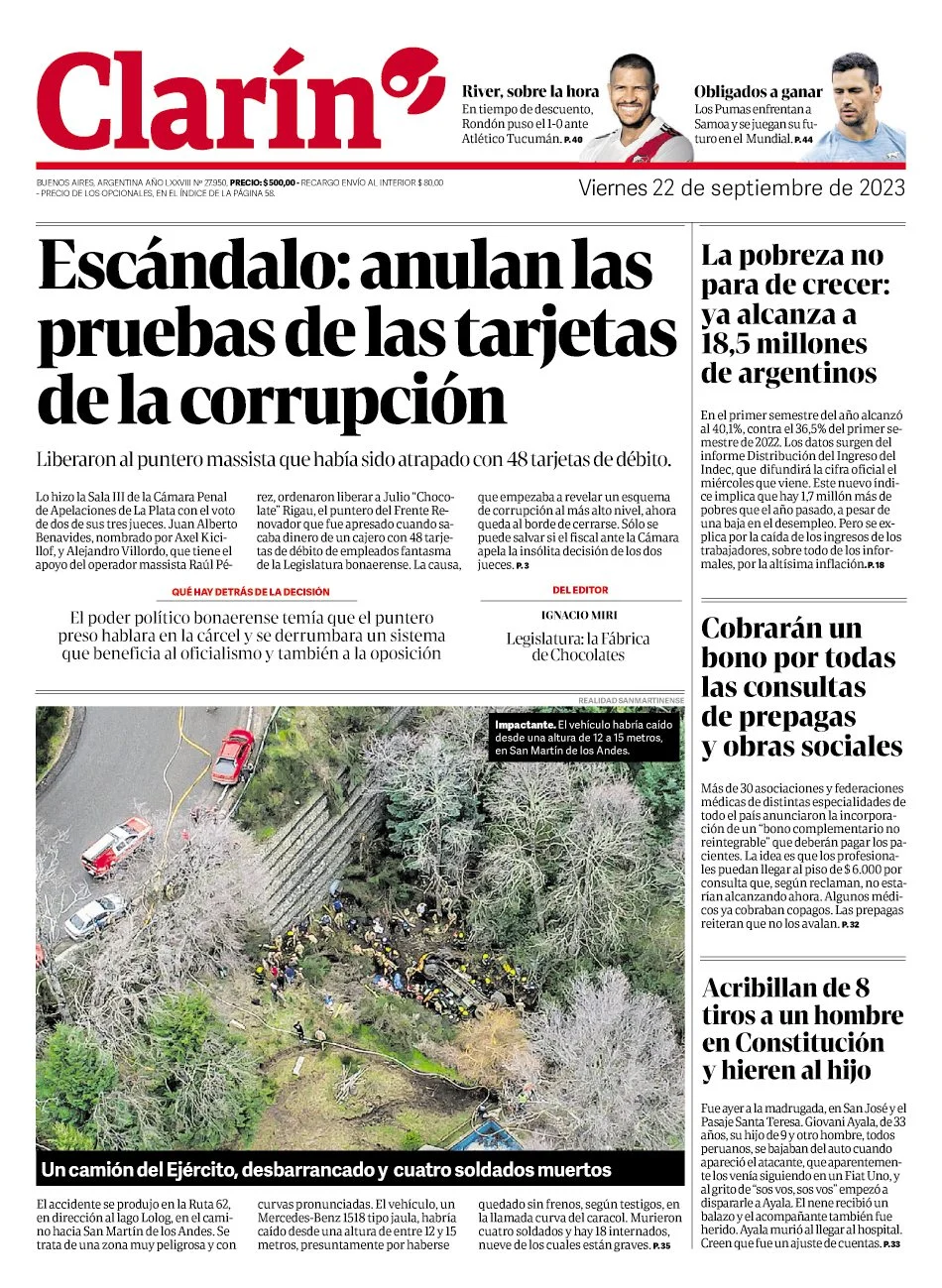 Portadas de diarios nacionales | Viernes 22 de septiembre