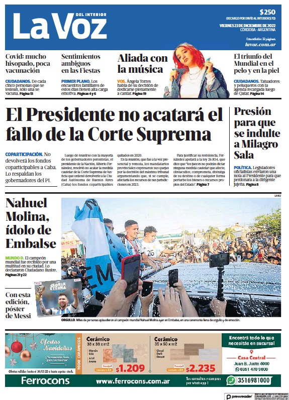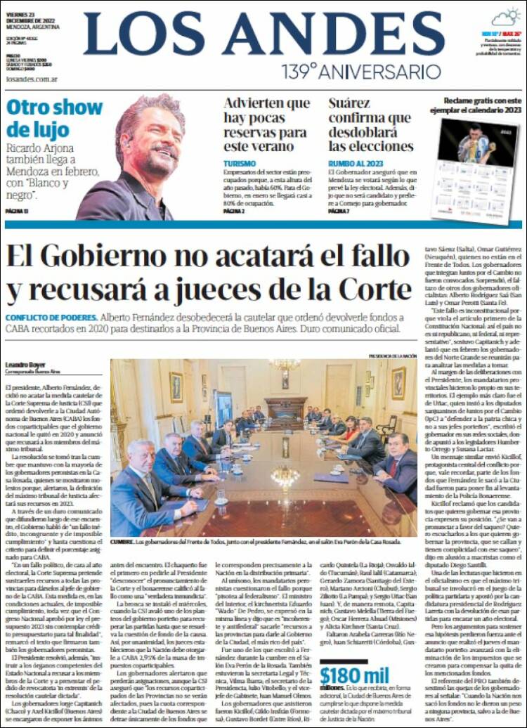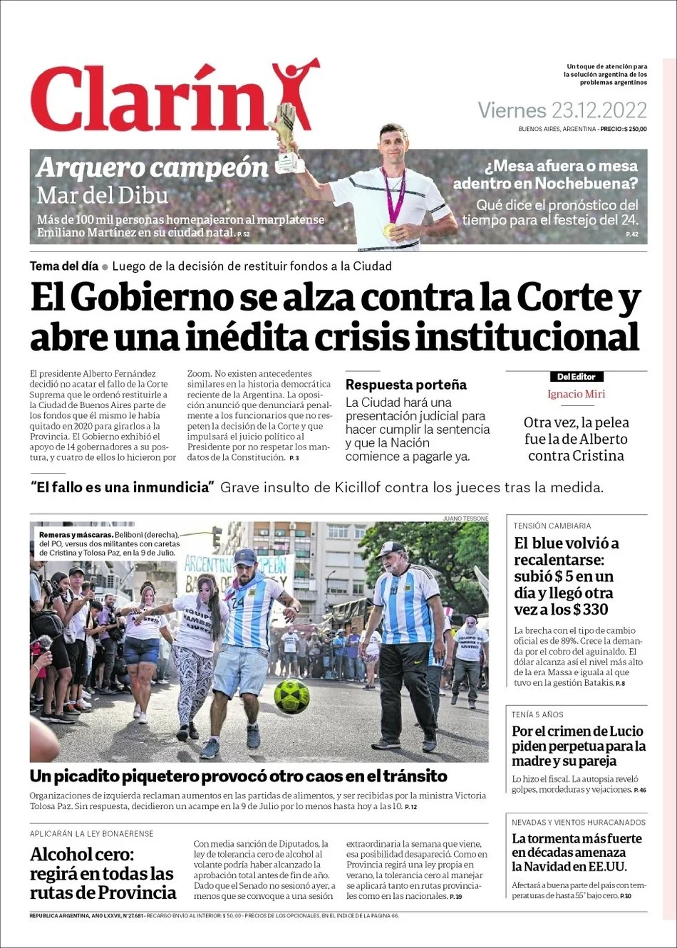 Portadas de diarios nacionales | Viernes 23 de diciembre