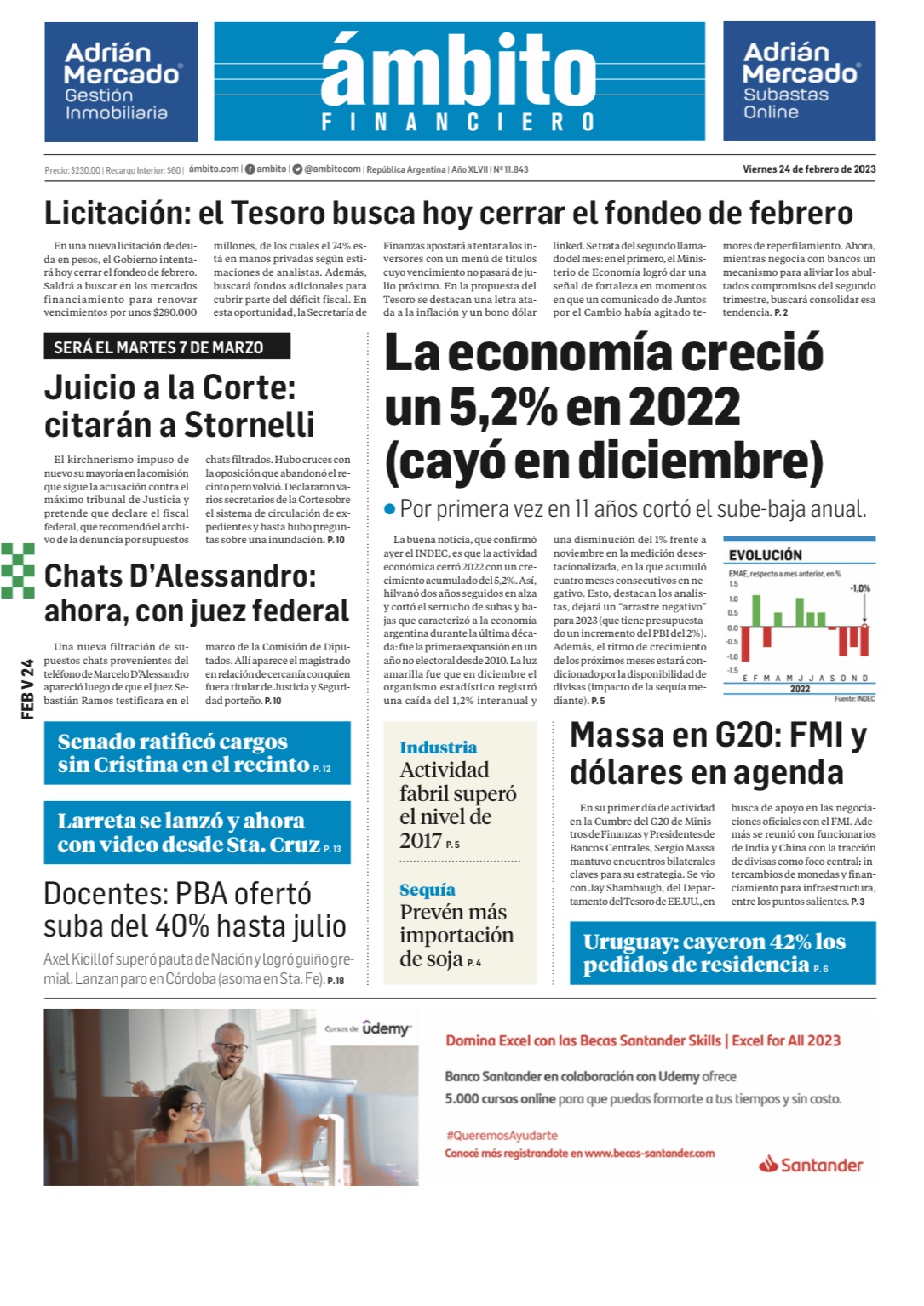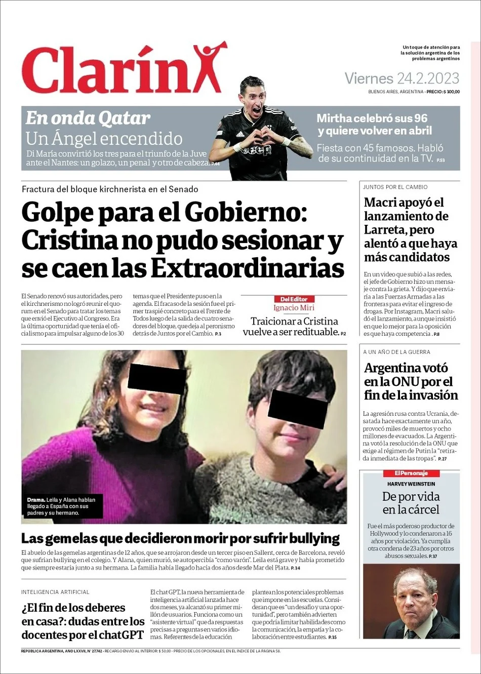 Portadas de diarios nacionales | Viernes 24 de febrero