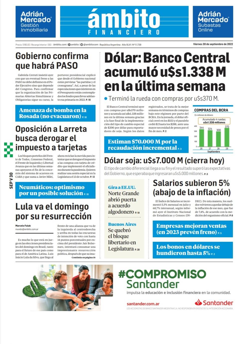 Portadas de diarios nacionales | Viernes 30 de septiembre
