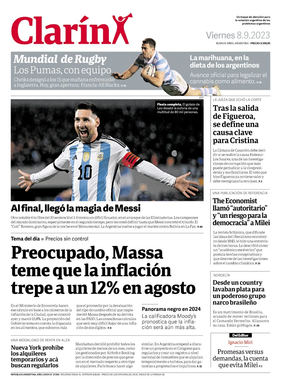 Portadas de diarios nacionales | viernes 8 de septiembre