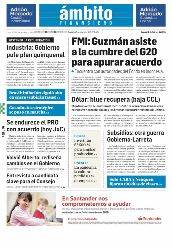 Leé las portadas de los principales diarios nacionales de este 10 de febrero