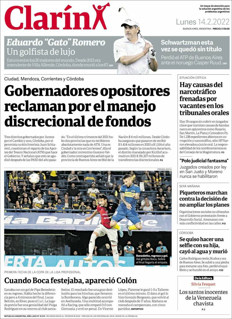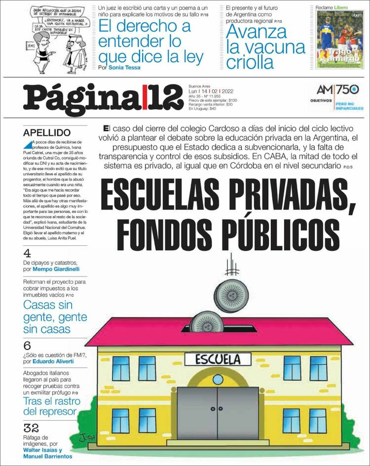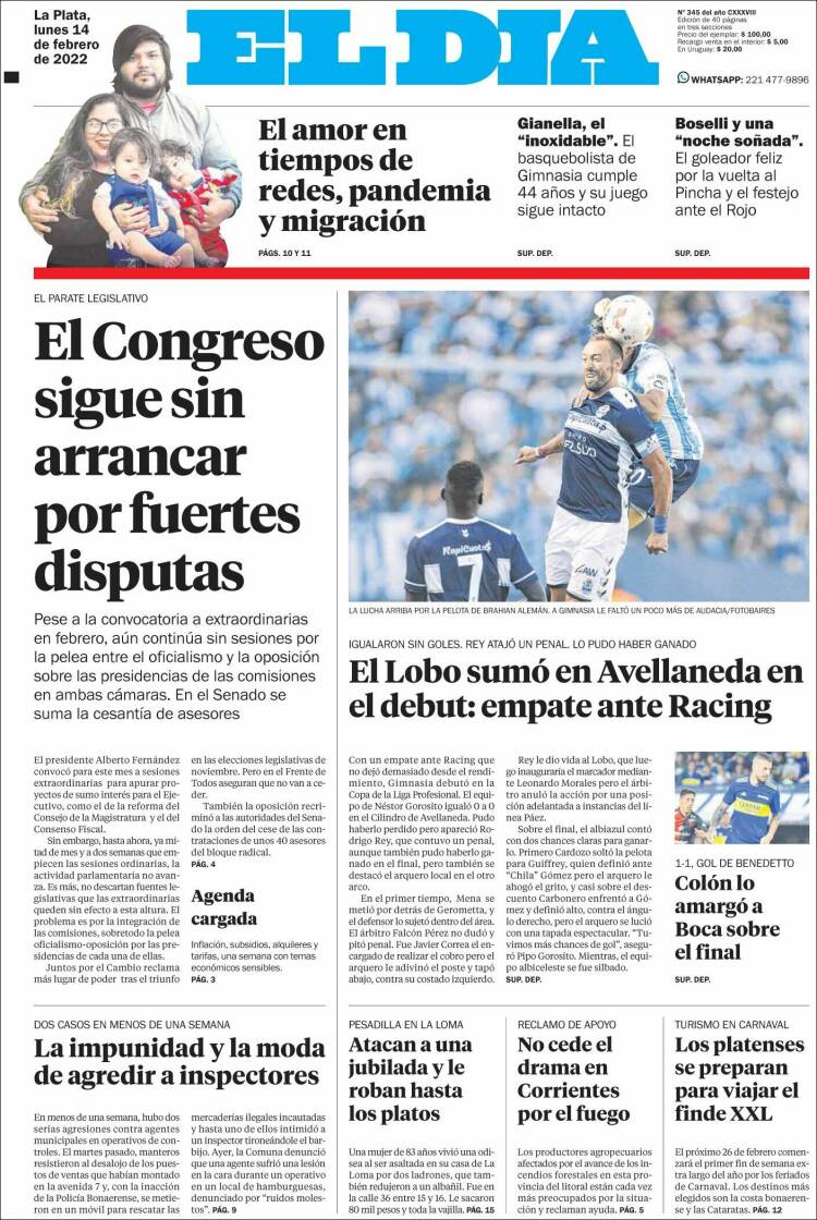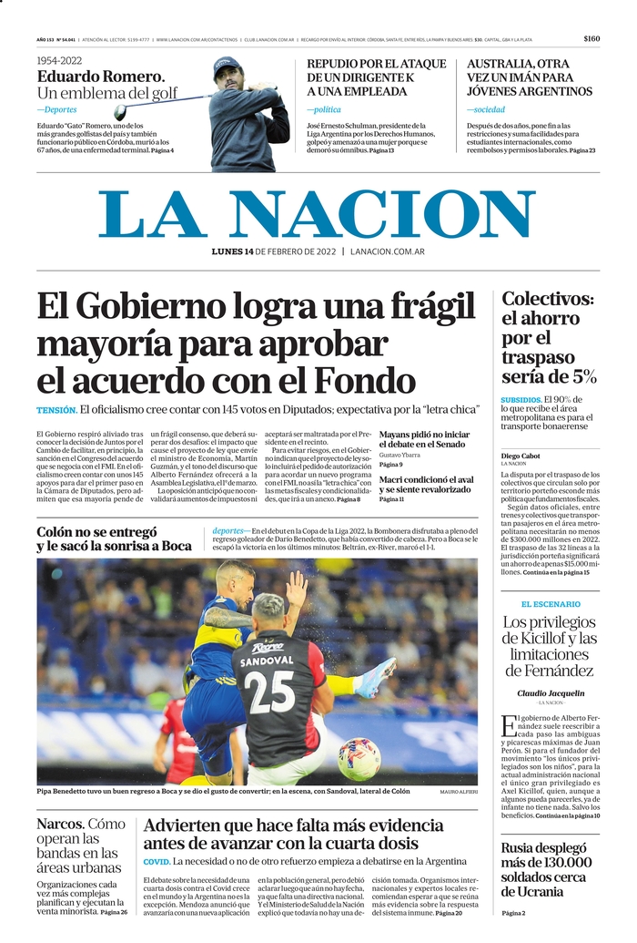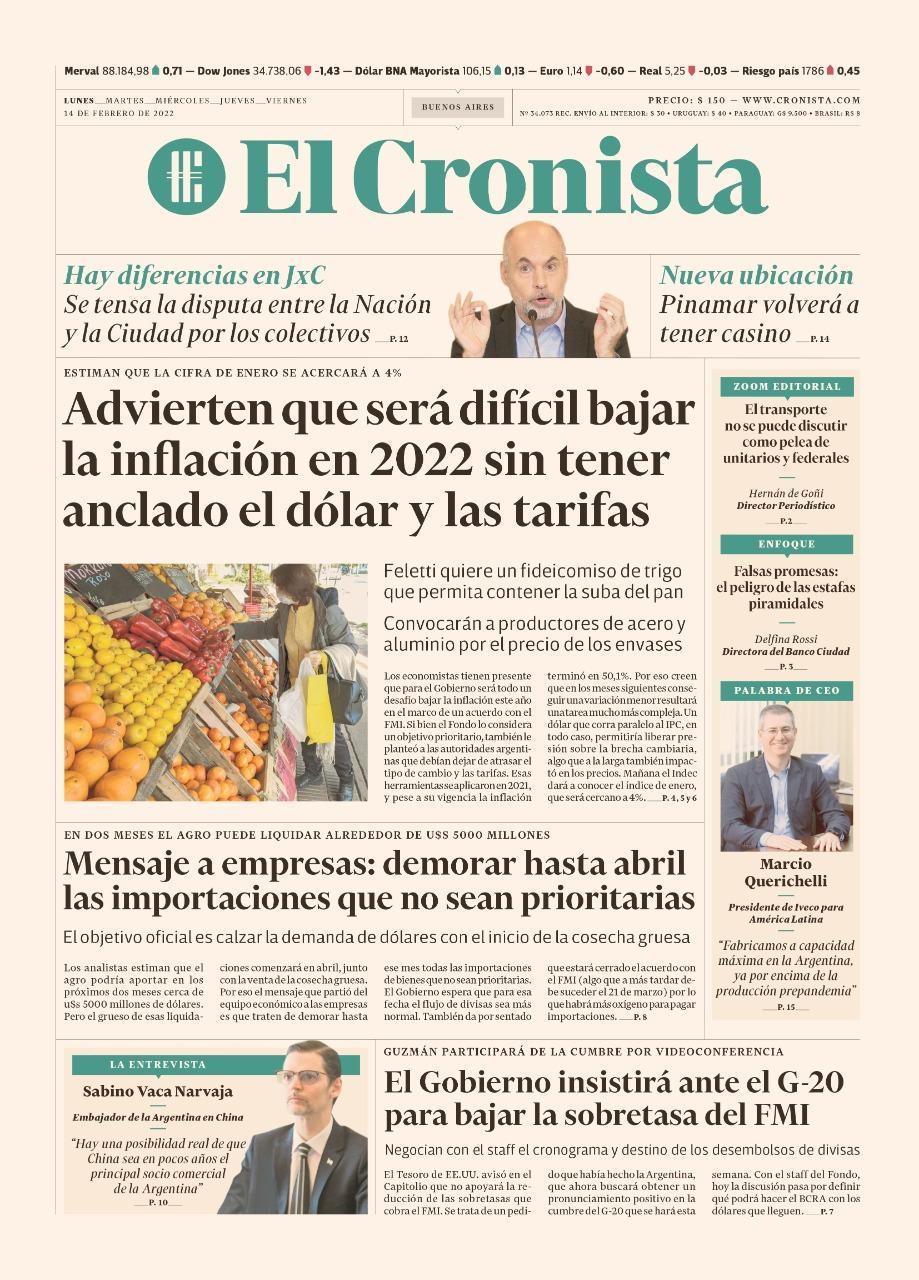 Leé las portadas de los principales diarios nacionales de hoy lunes 14 de febrero