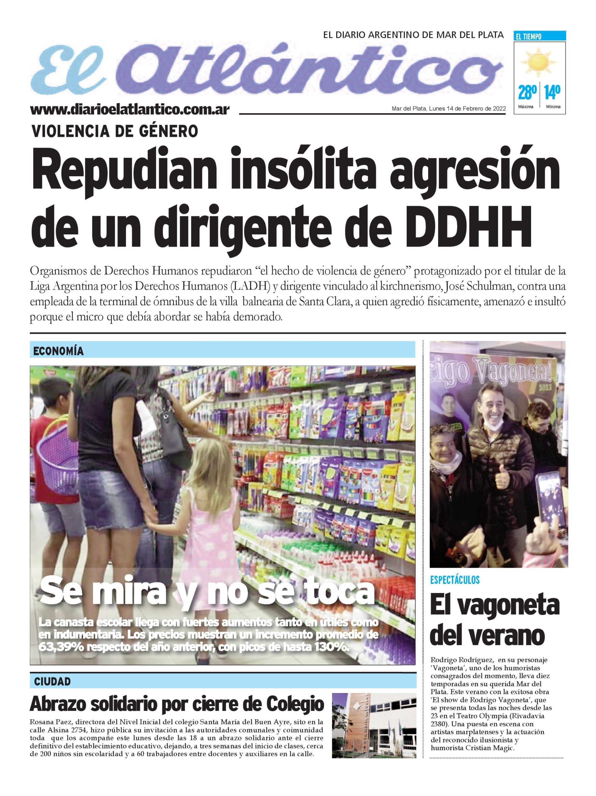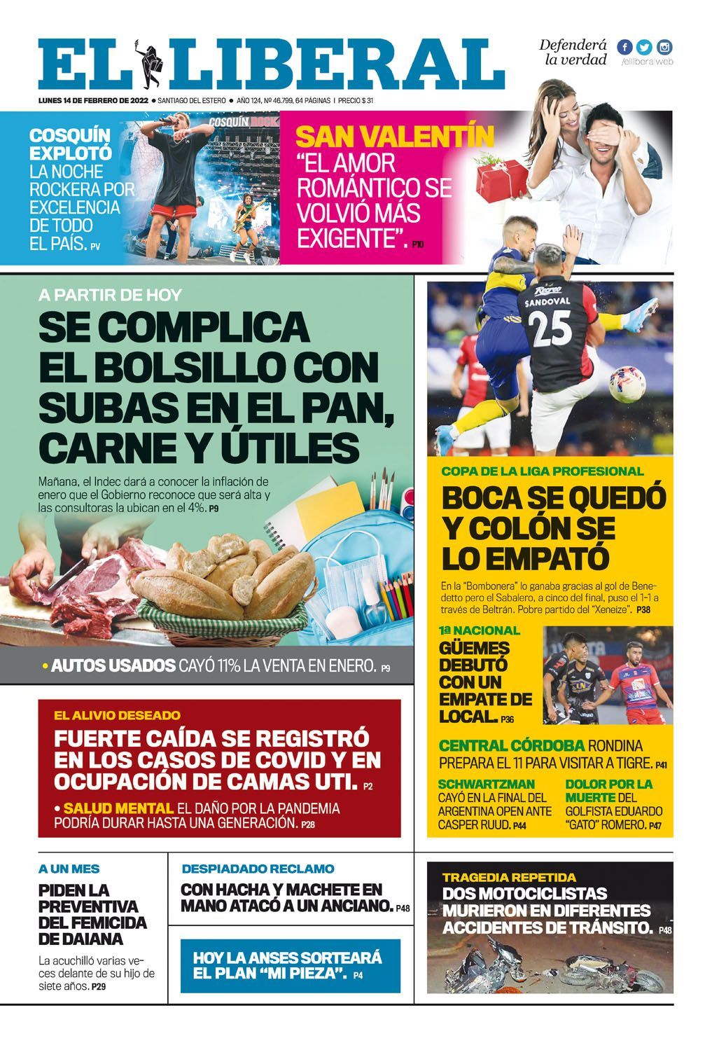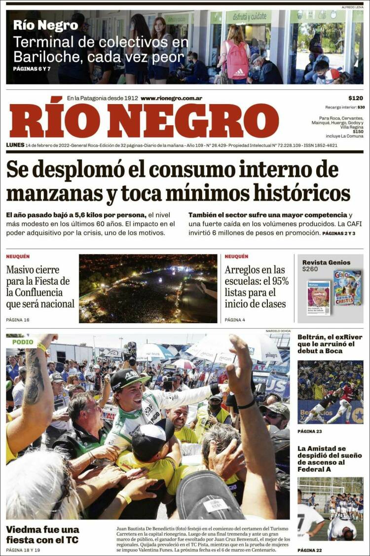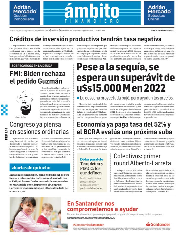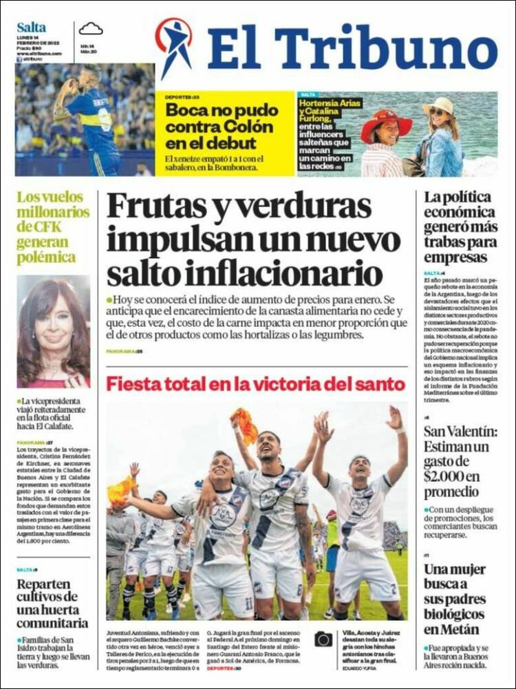 Leé las portadas de los principales diarios nacionales de hoy lunes 14 de febrero