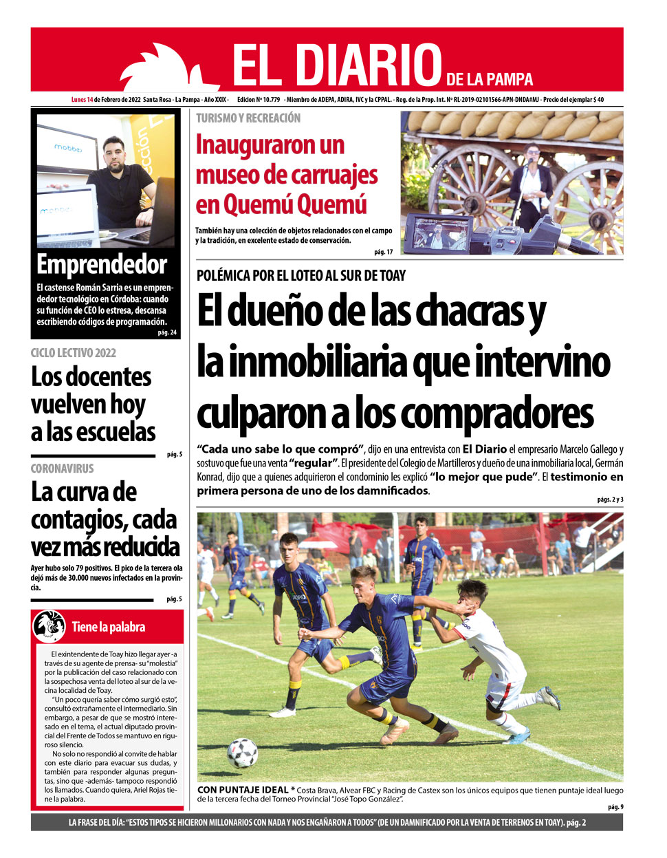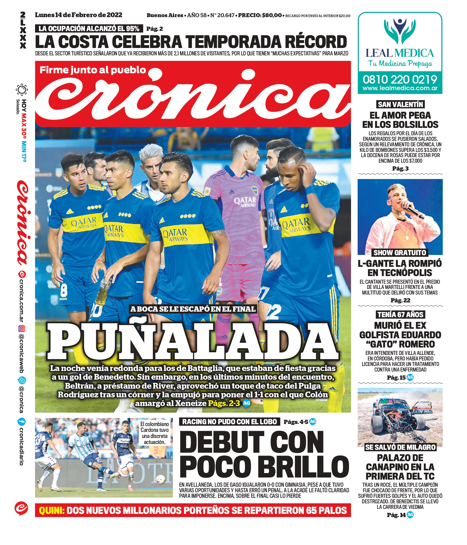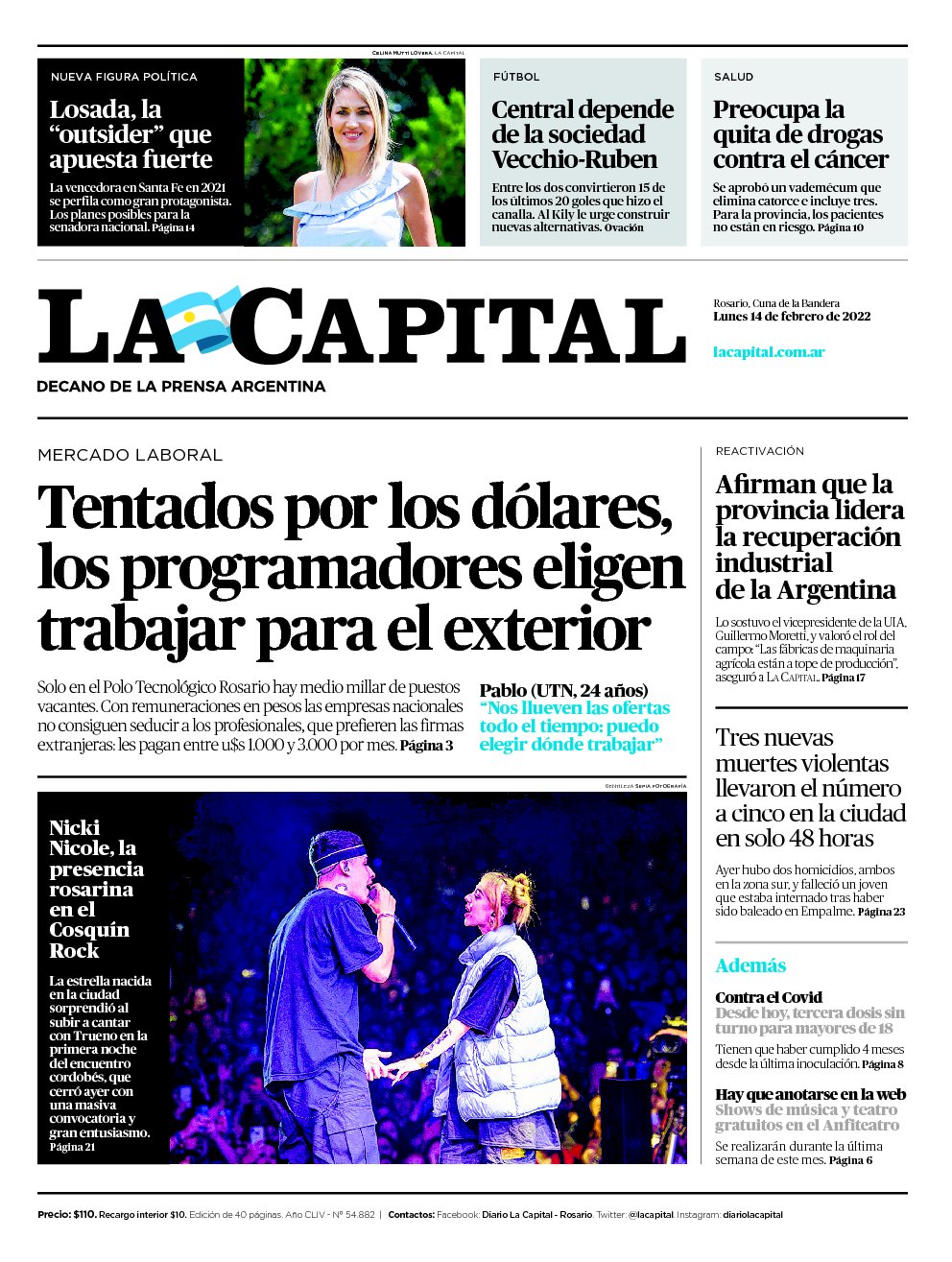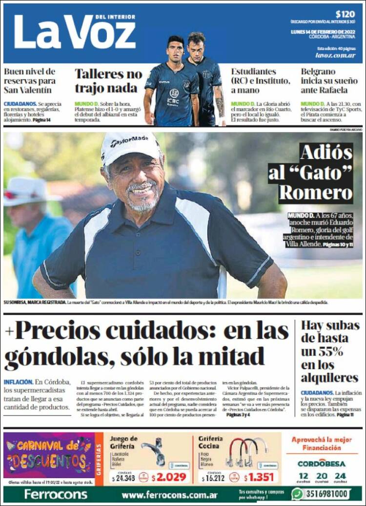 Leé las portadas de los principales diarios nacionales de hoy lunes 14 de febrero