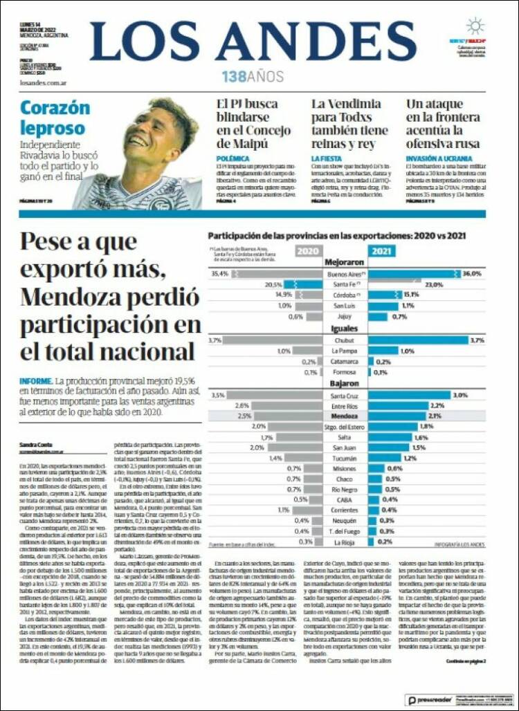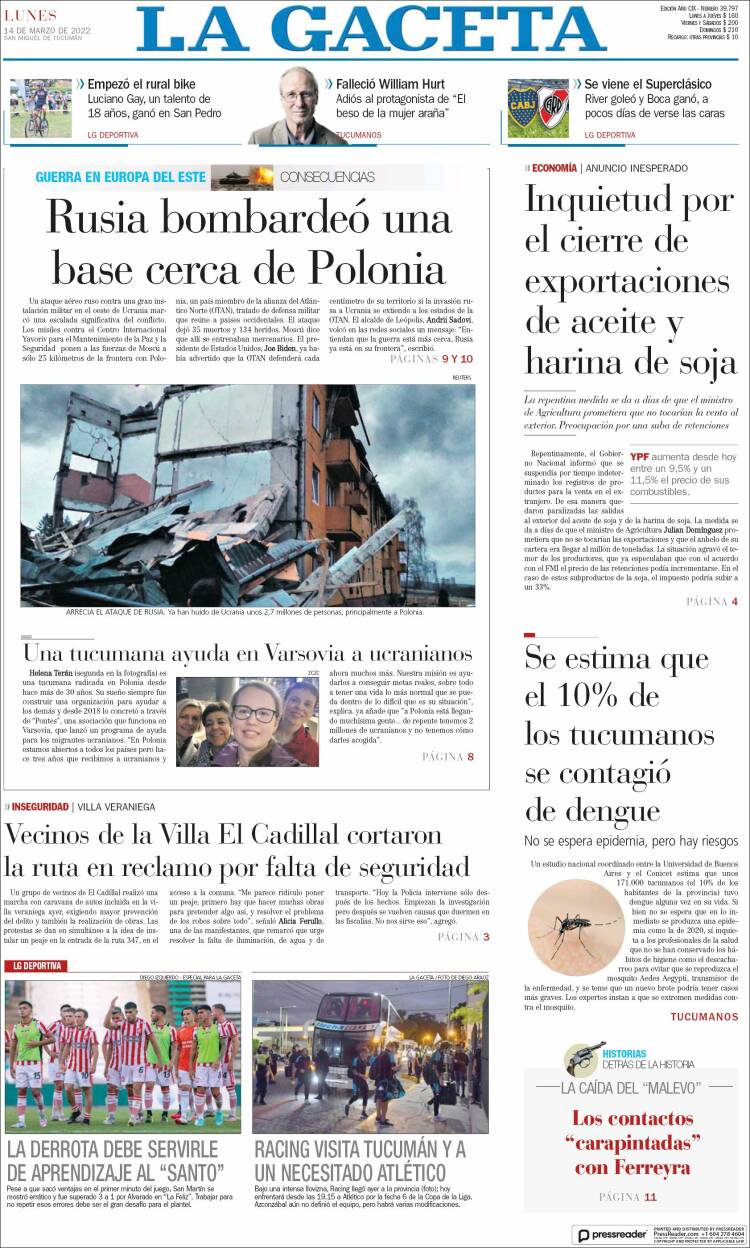 Portadas de los principales diarios nacionales del 14 de marzo