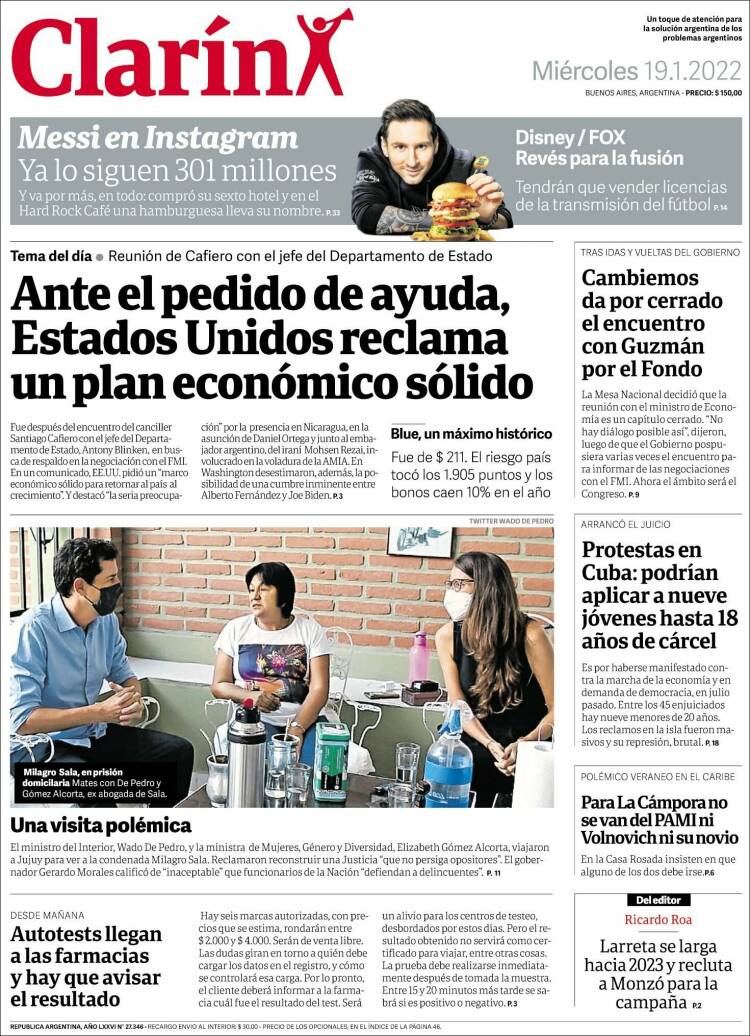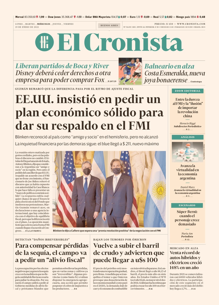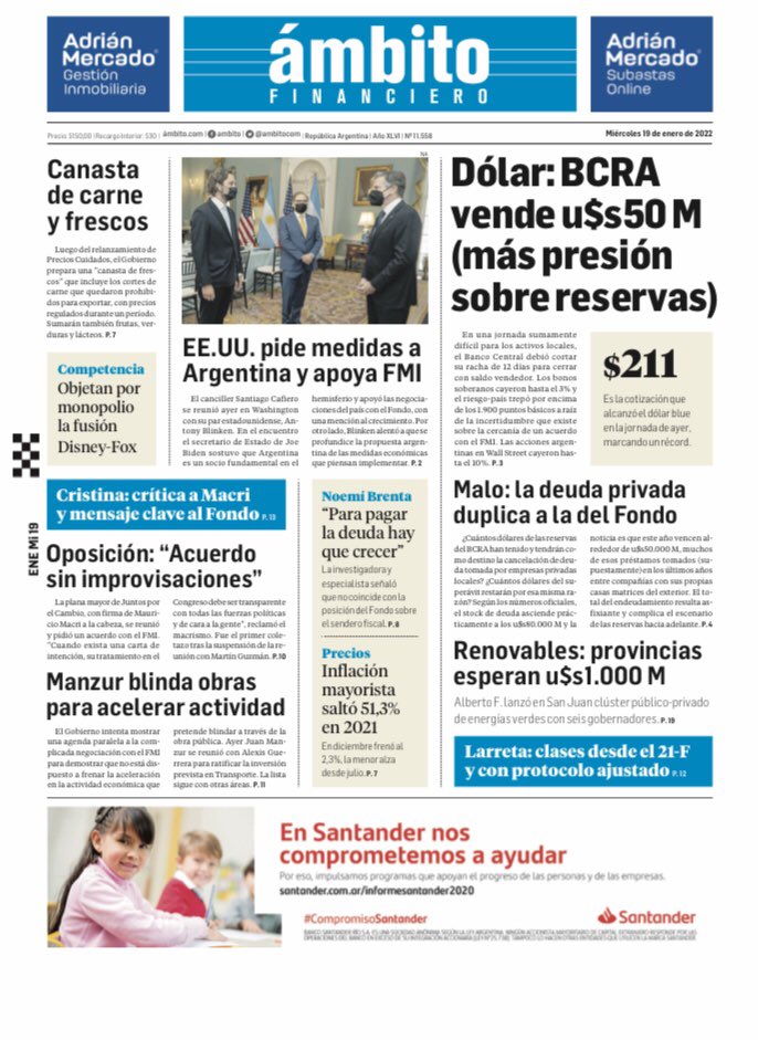 Portadas de los principales diarios nacionales del 19 de enero