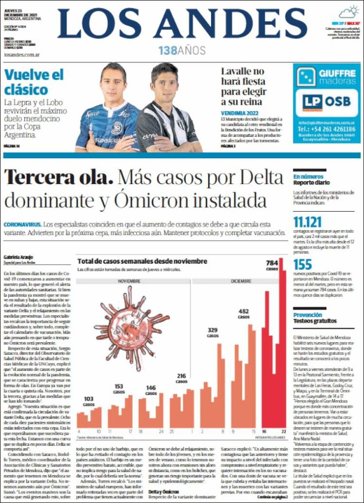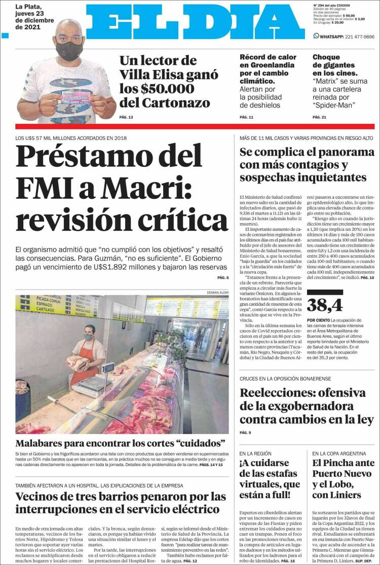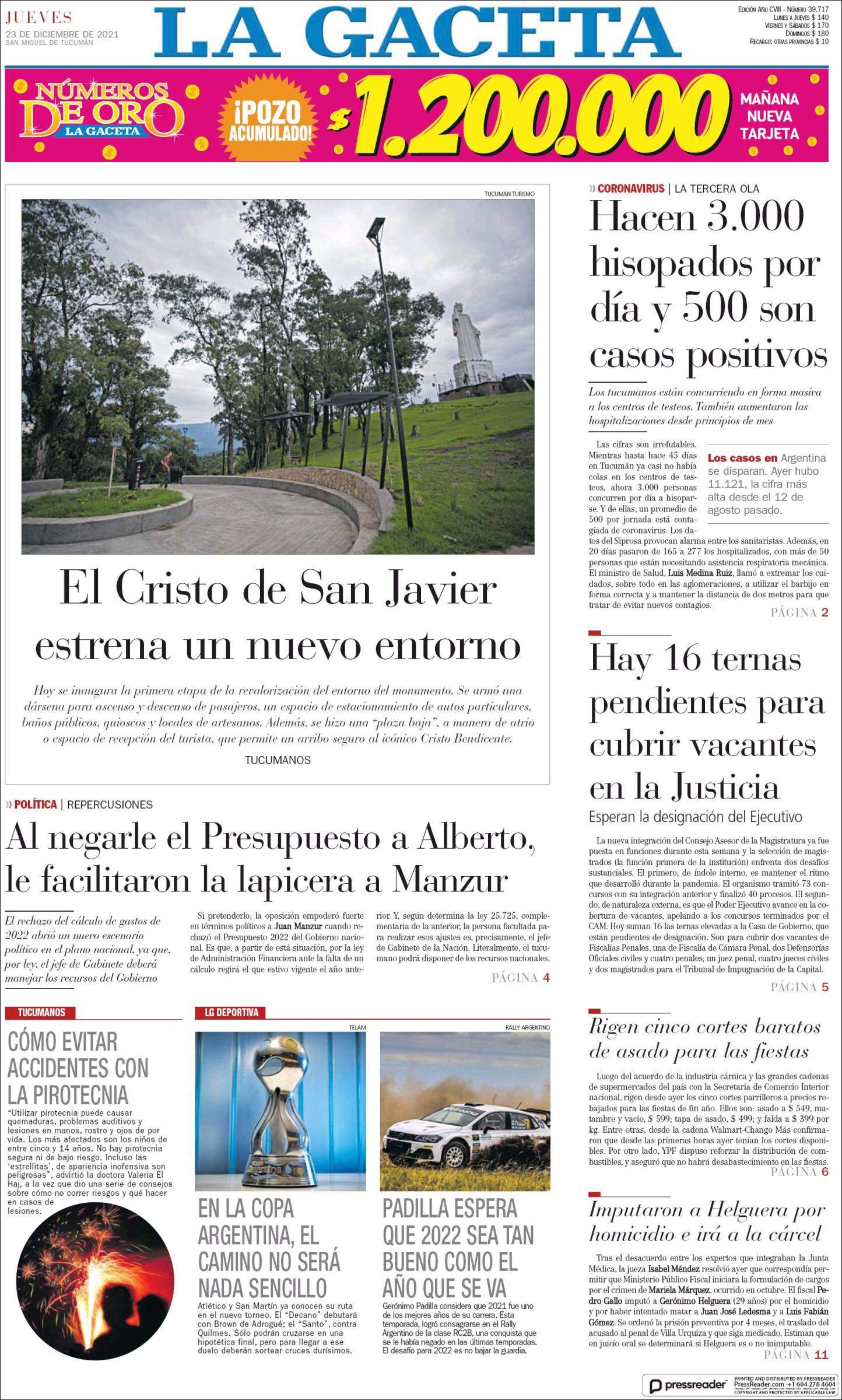 Portadas de los principales diarios nacionales del 23 de diciembre