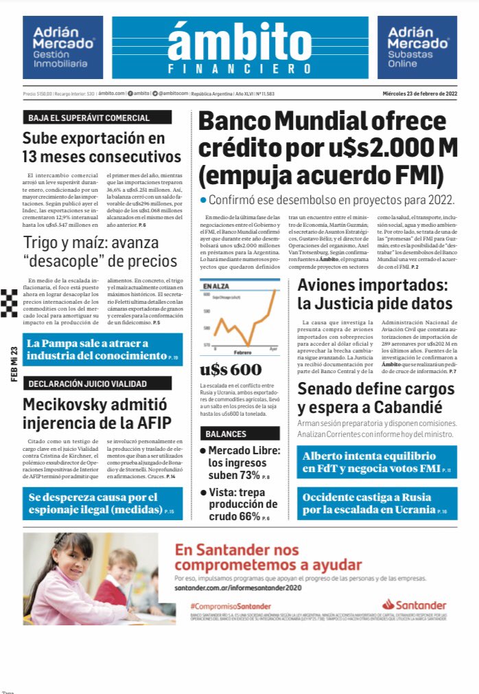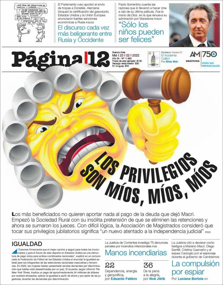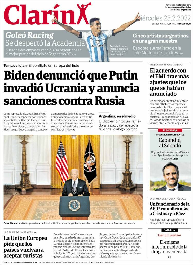 Leé las portadas de los principales diarios nacionales del 23 de febrero