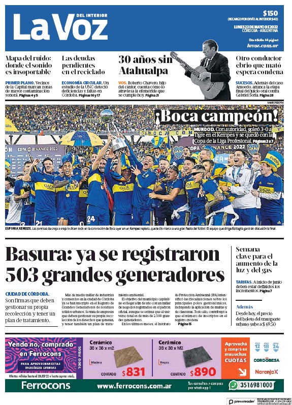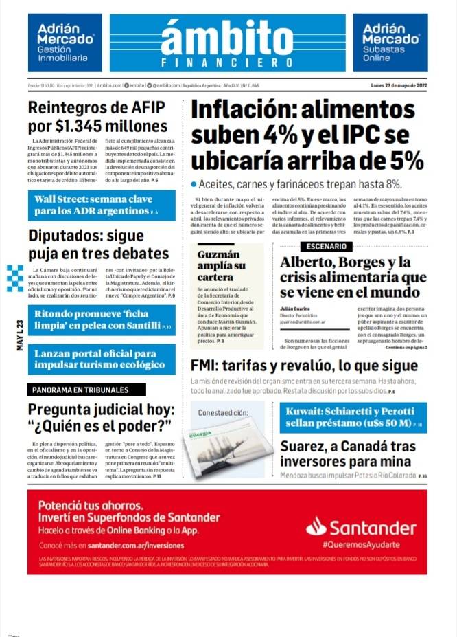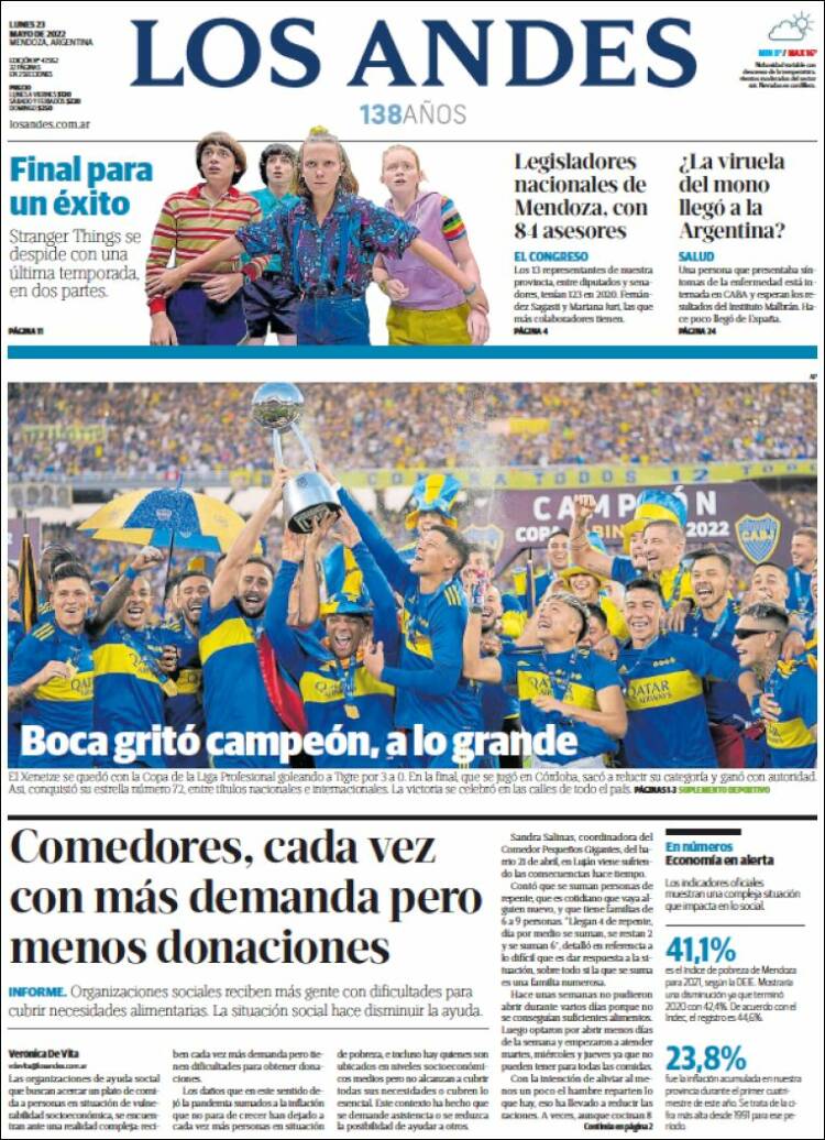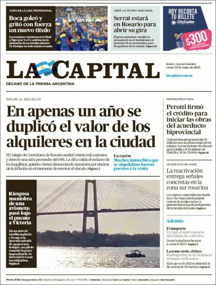 Leé las tapas de los principales diarios nacionales de este lunes 23 de mayo
