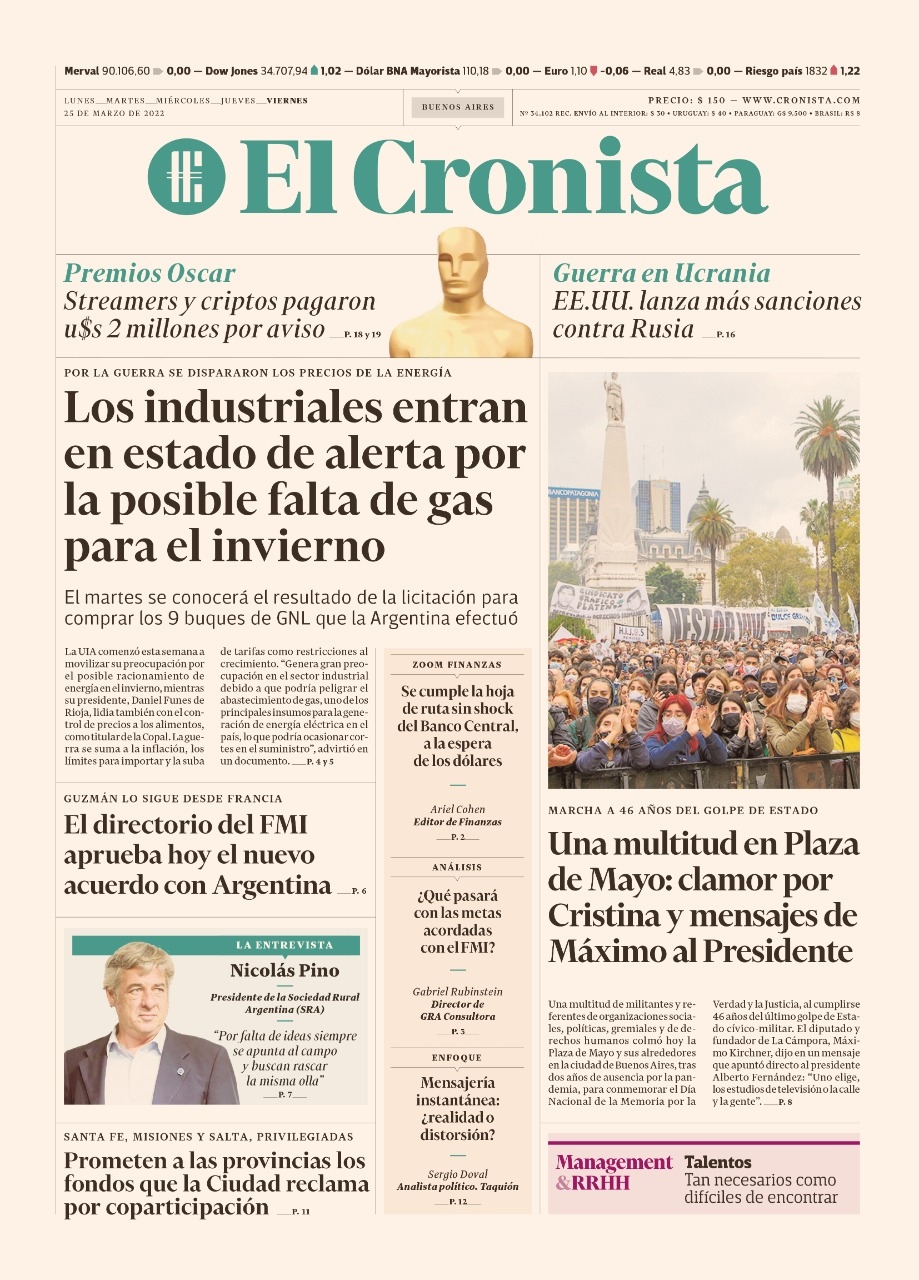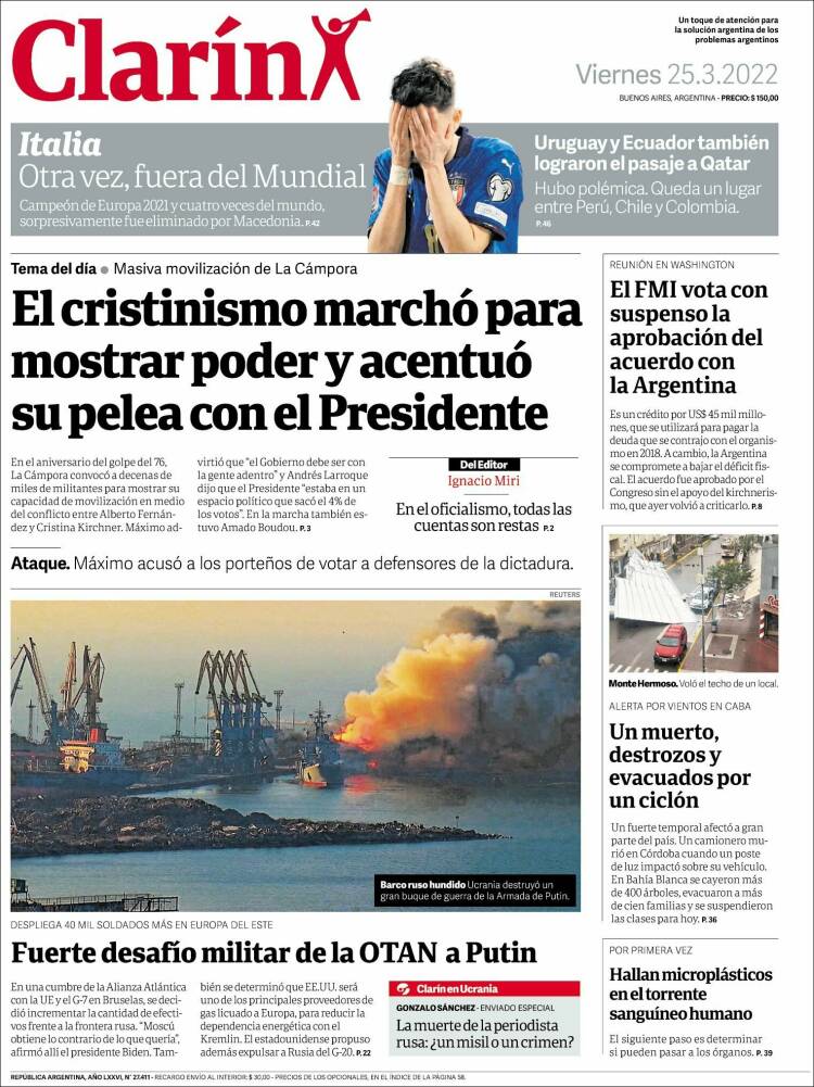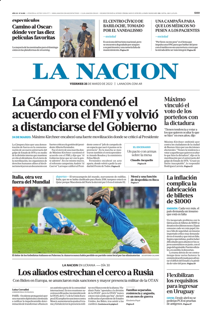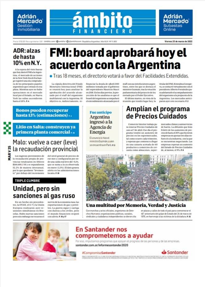 Portadas de los principales diarios nacionales del 25 de marzo