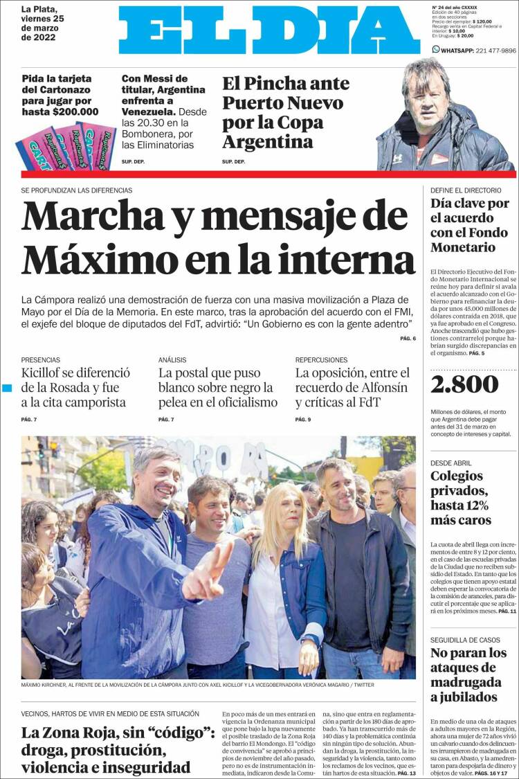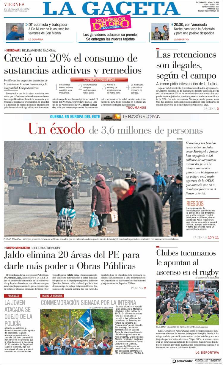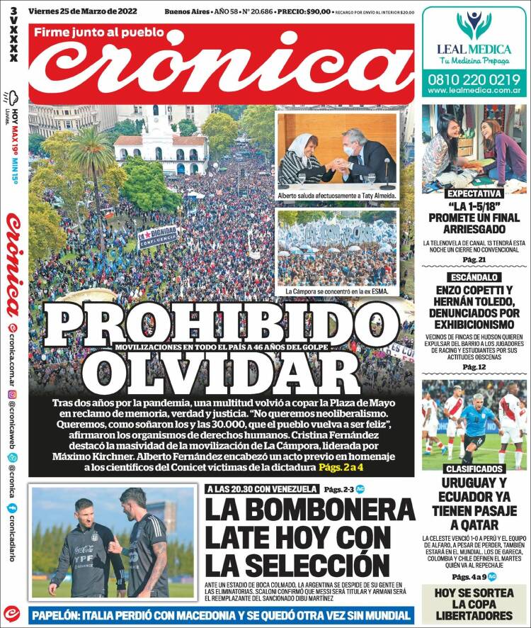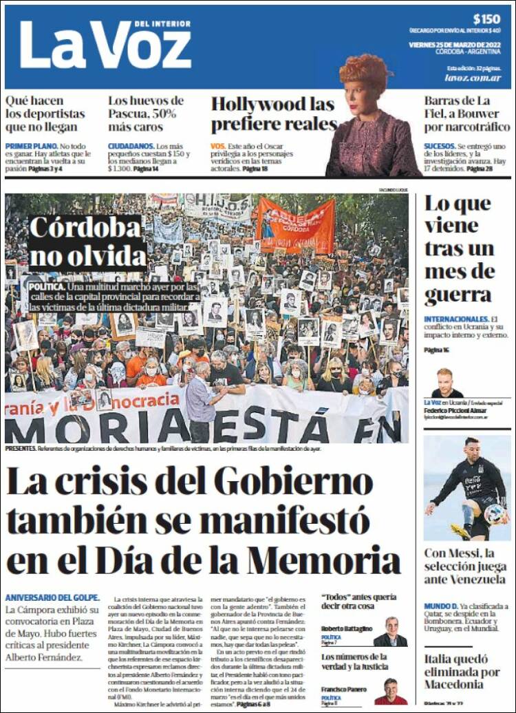 Portadas de los principales diarios nacionales del 25 de marzo