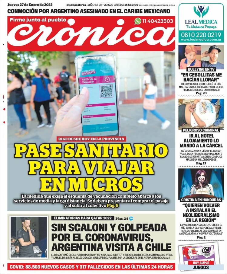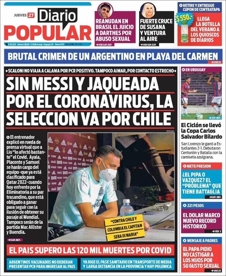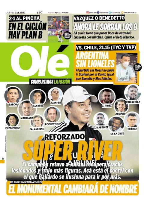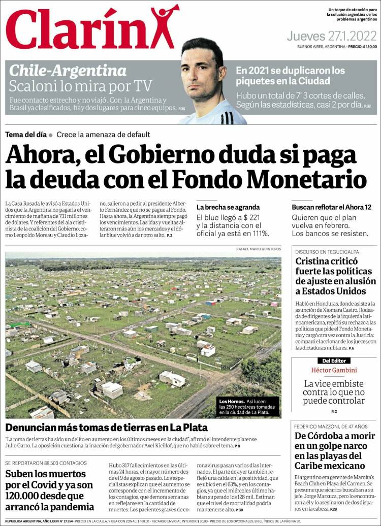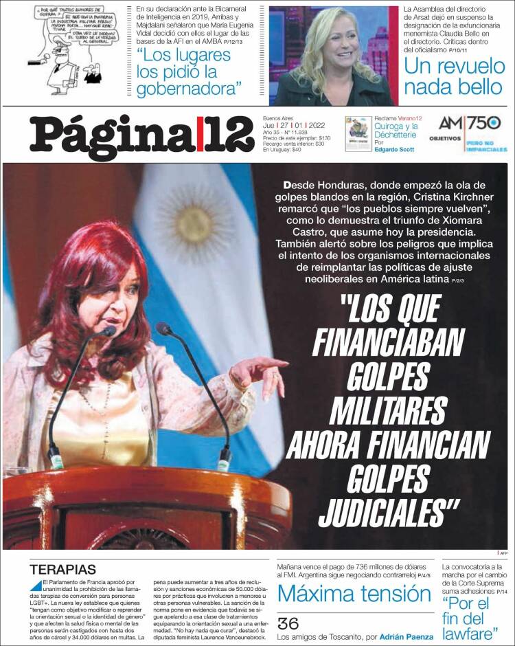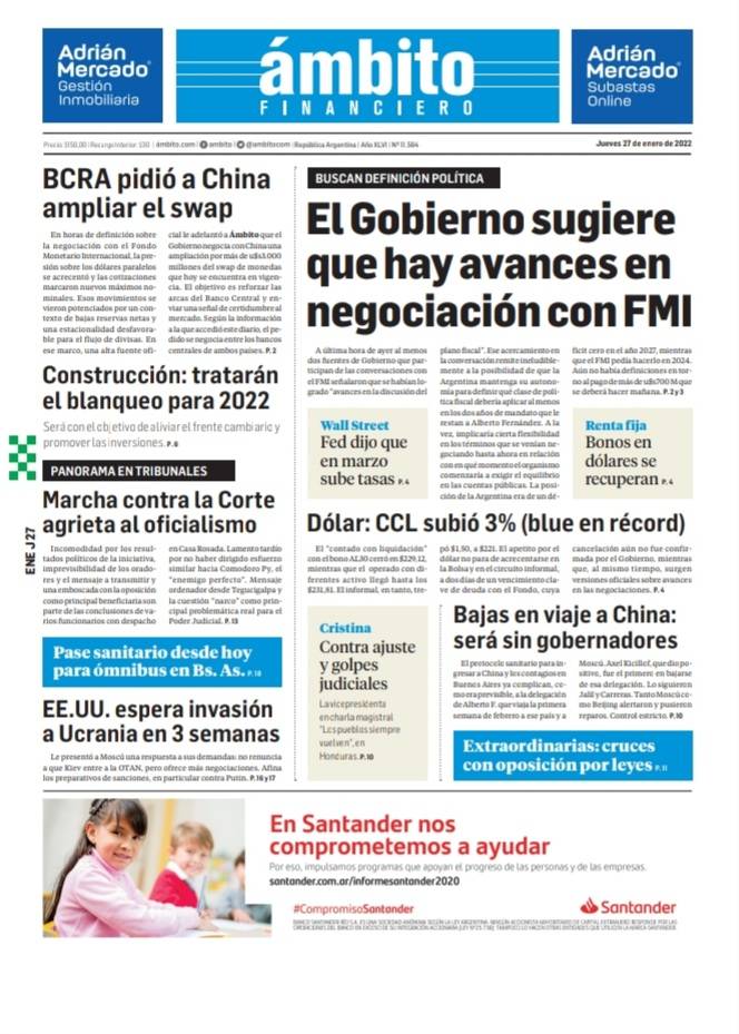 Portadas de los principales diarios nacionales del 27 de enero