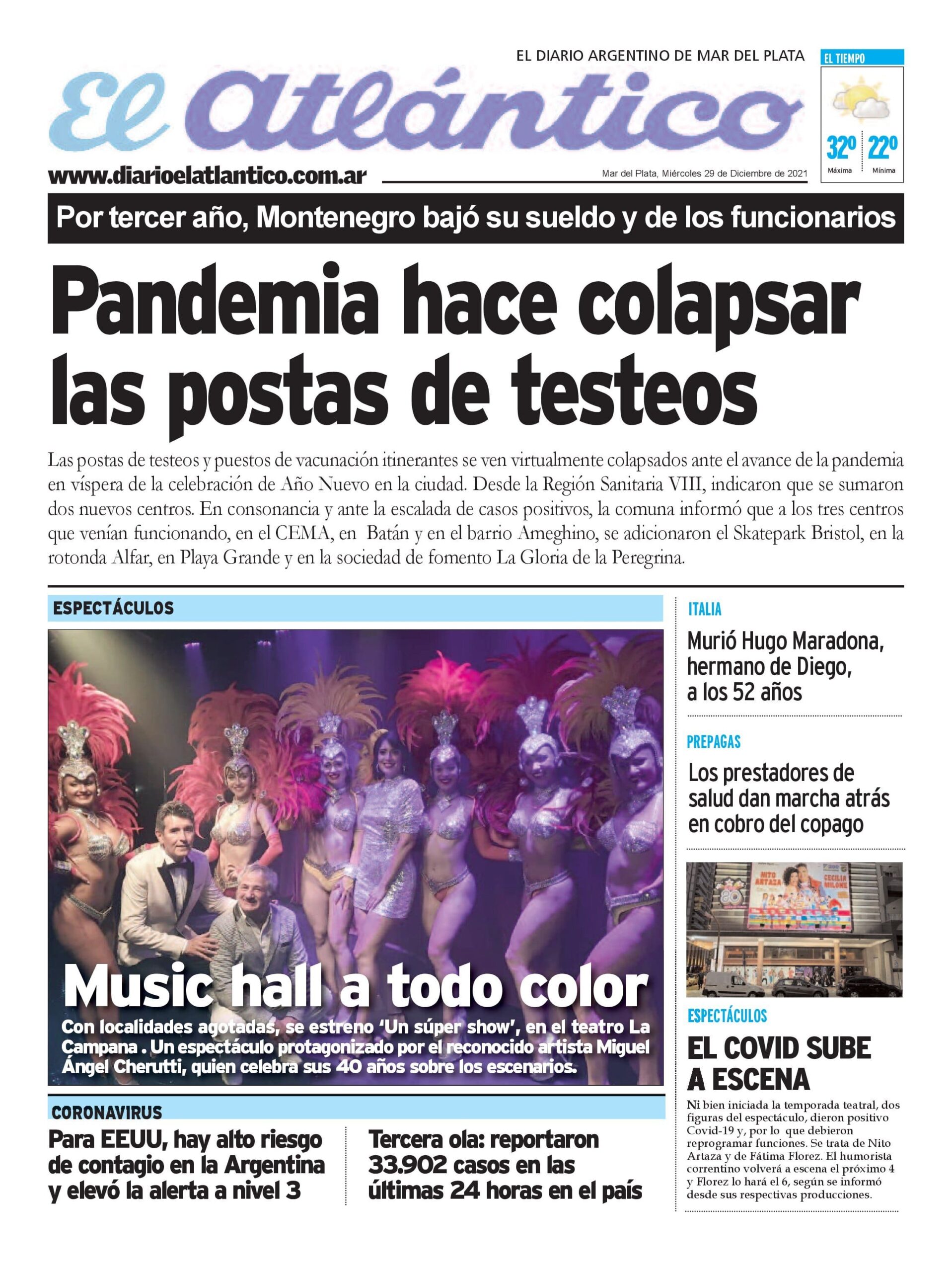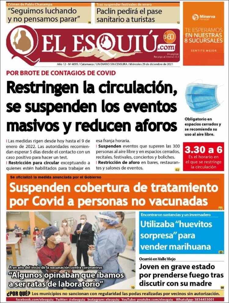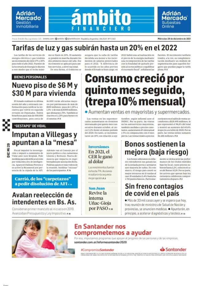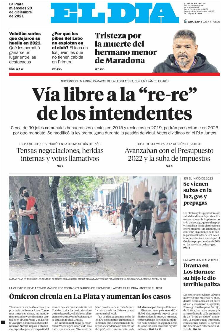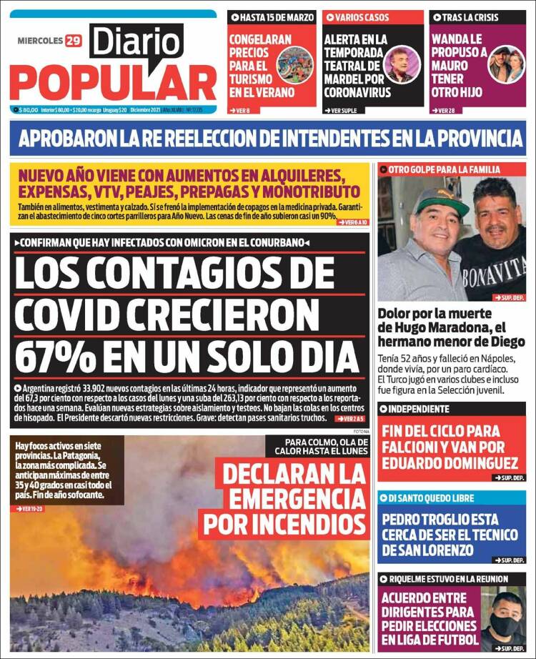 Enterate de lo que pasa en el país leyendo las portadas de los principales diarios nacionales del 29-12-2021