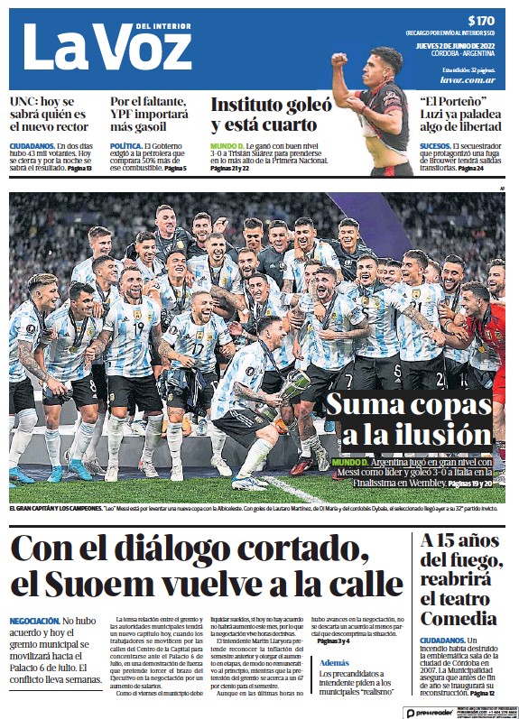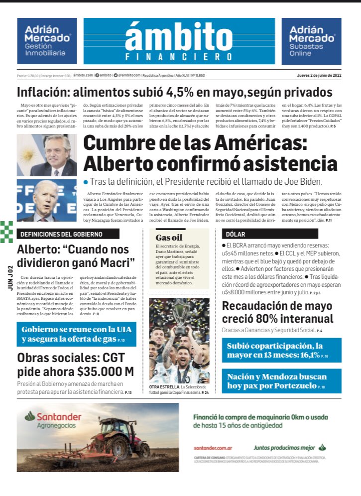Leé las tapas de los principales diarios nacionales de este jueves 2 de junio