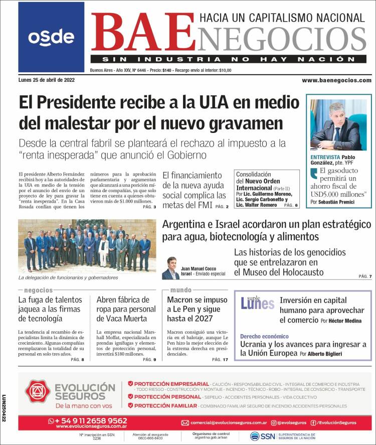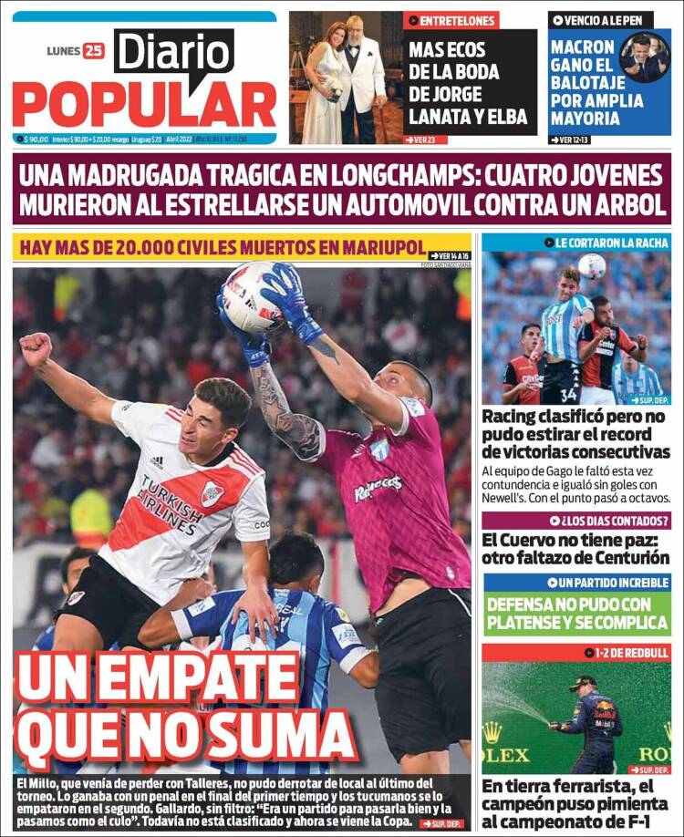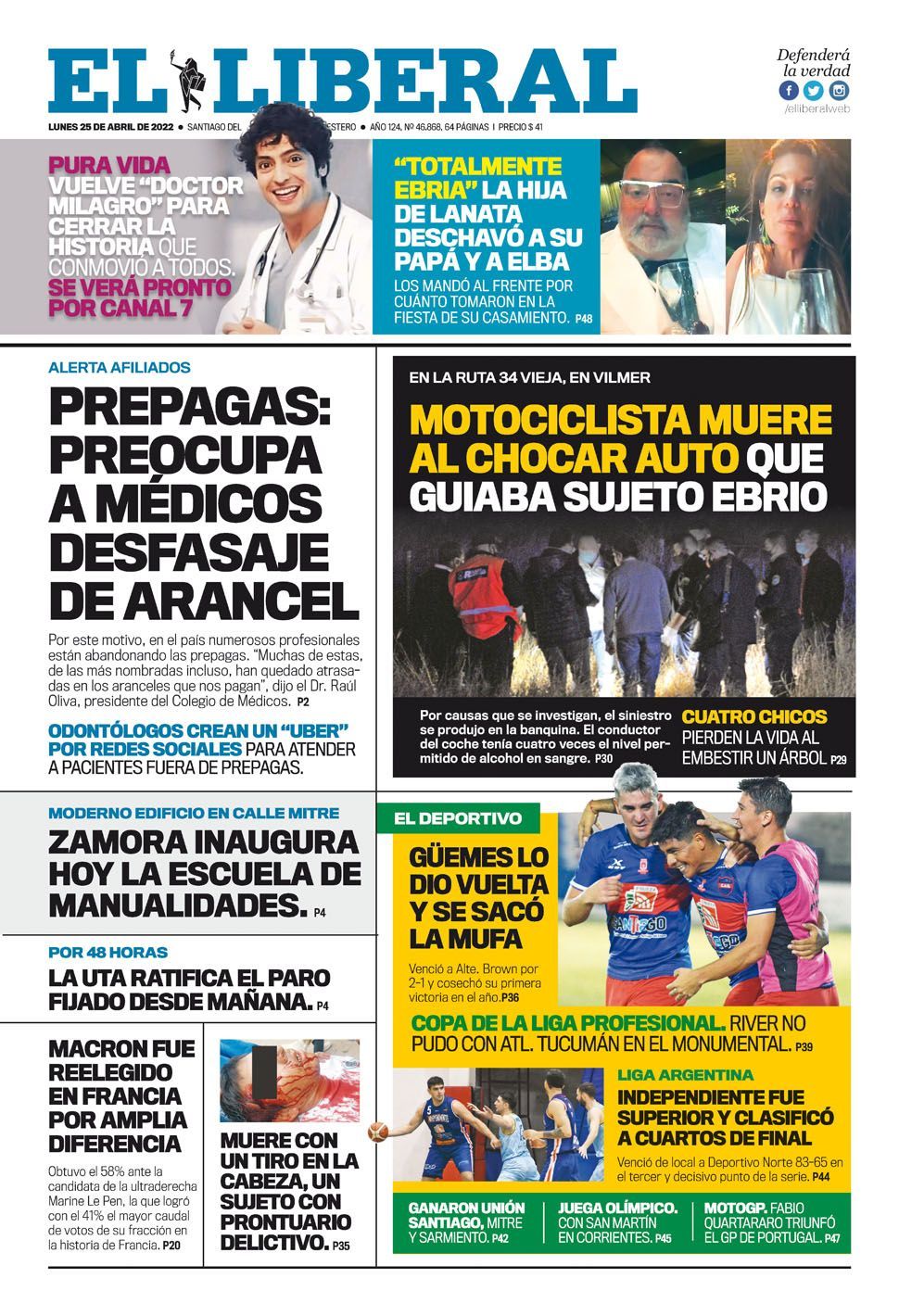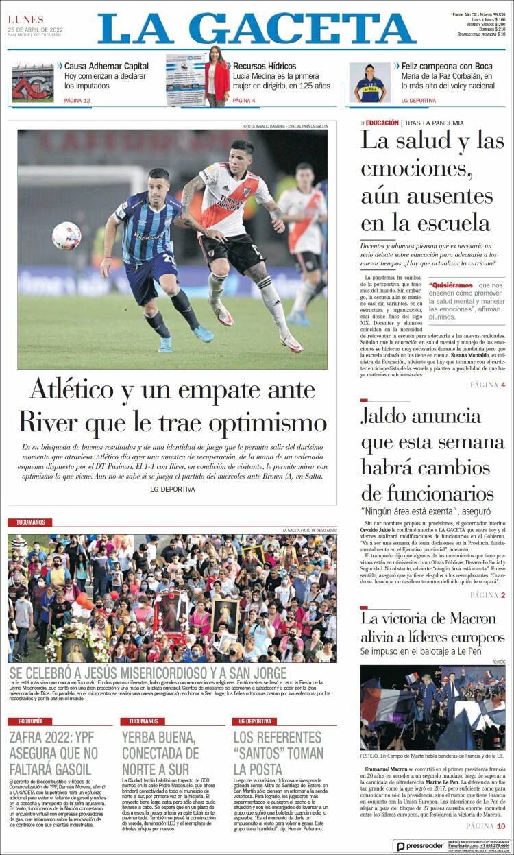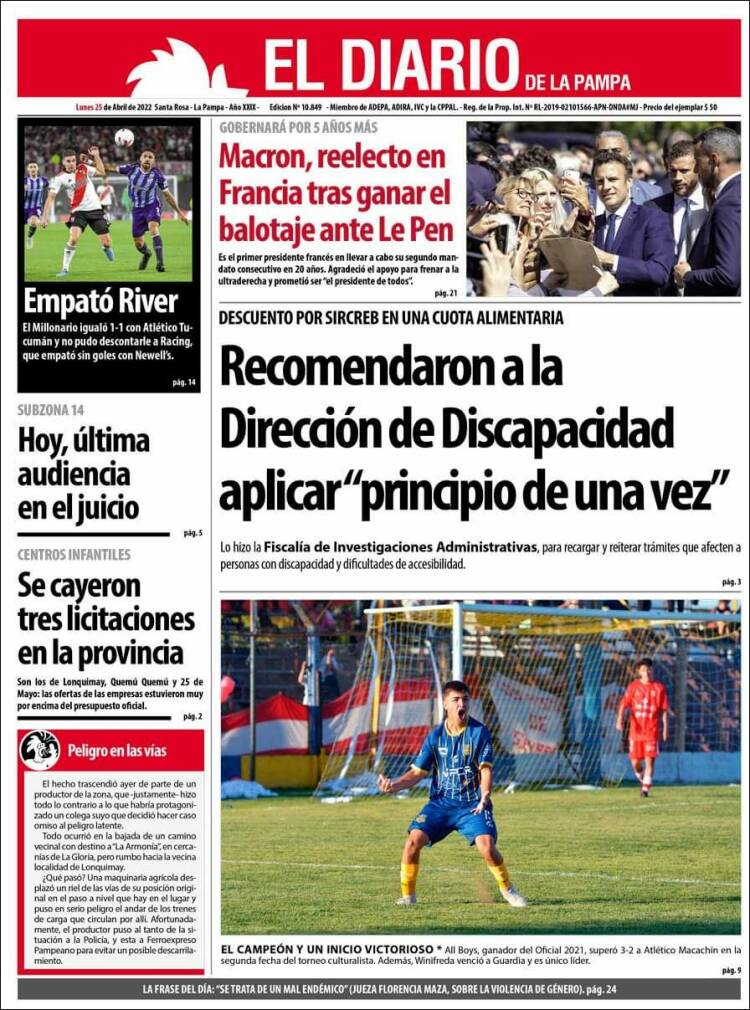 Portadas de los principales diarios nacionales del lunes 25 de abril