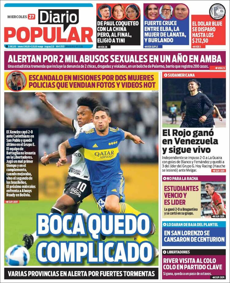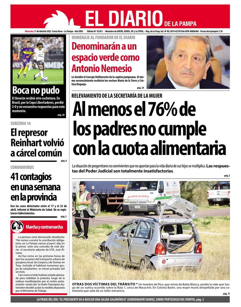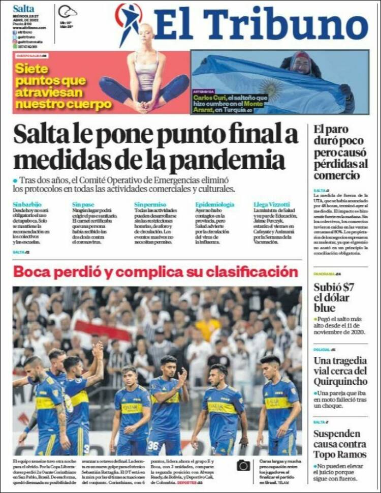 Portadas de los principales diarios nacionales del miércoles 27 de abril
