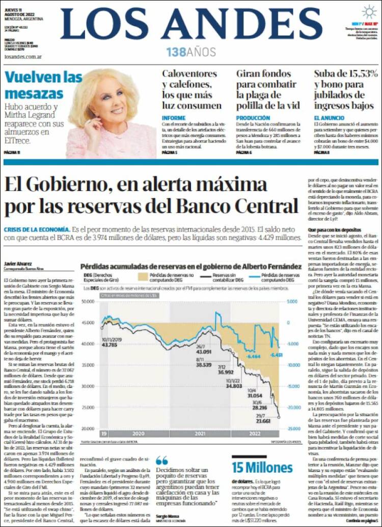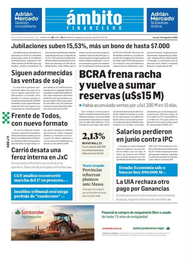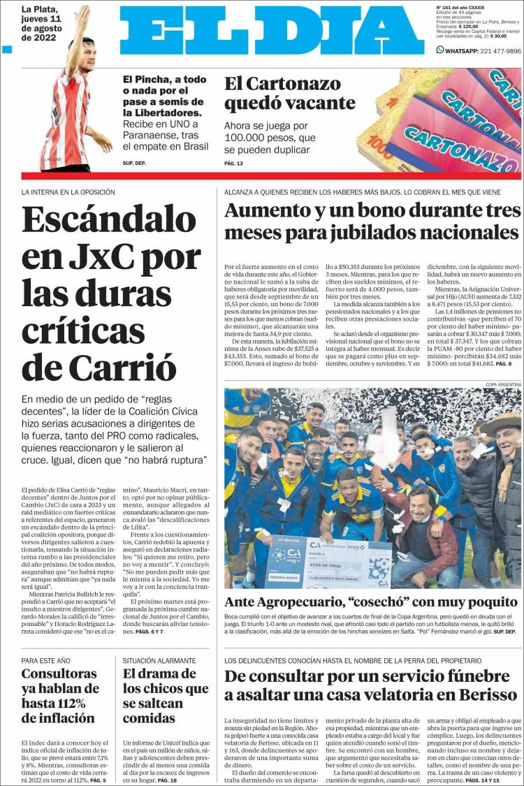 Portadas de los principales diarios nacionales | Jueves 11 de agosto