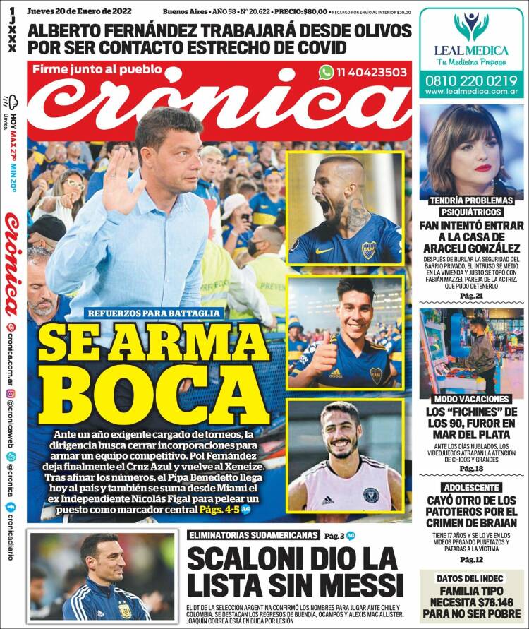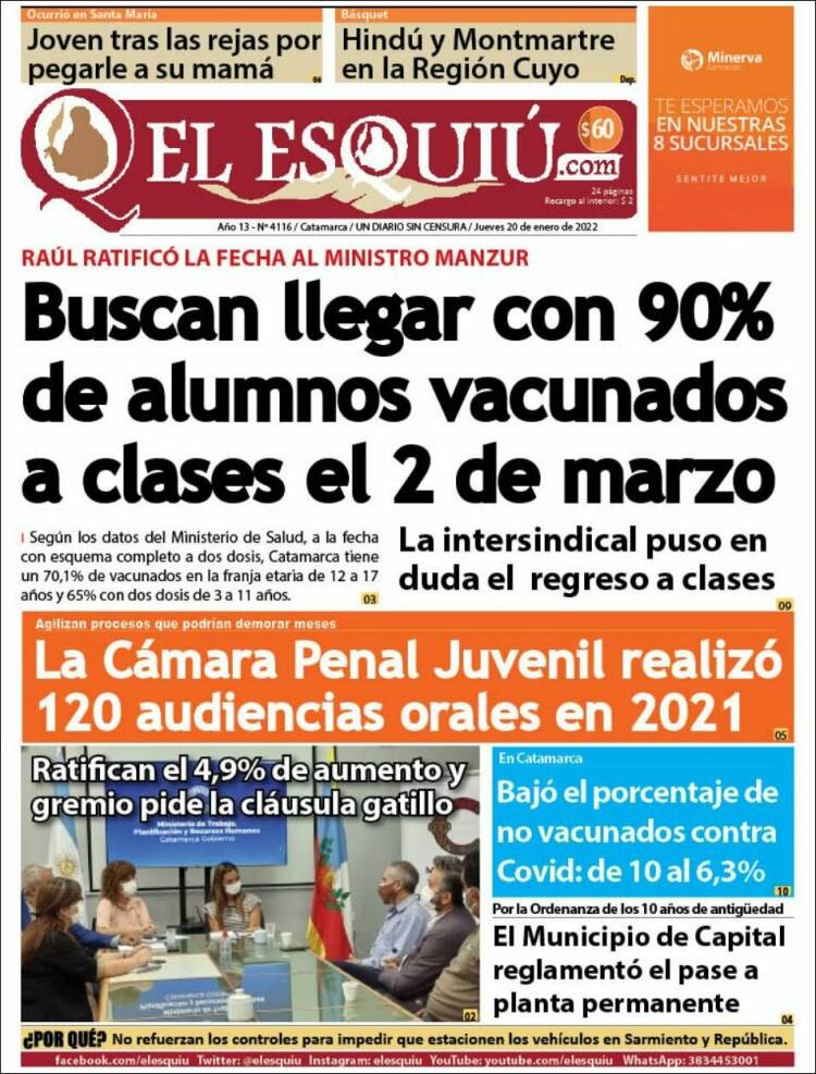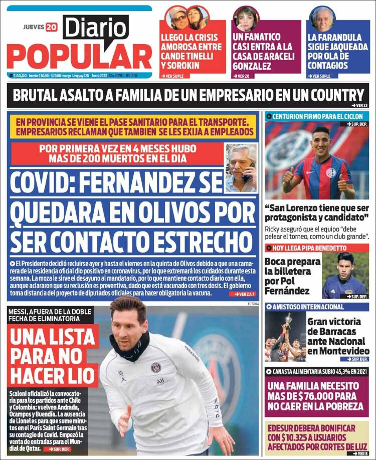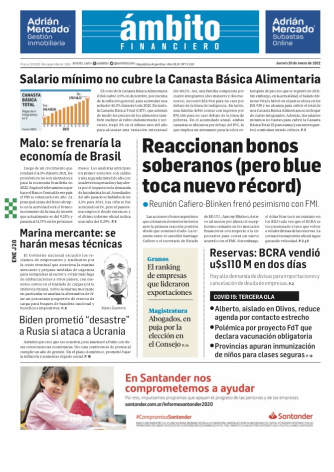 Portadas de los principales diarios nacionales | jueves 20-01-2022