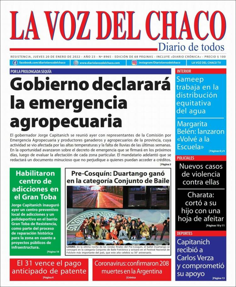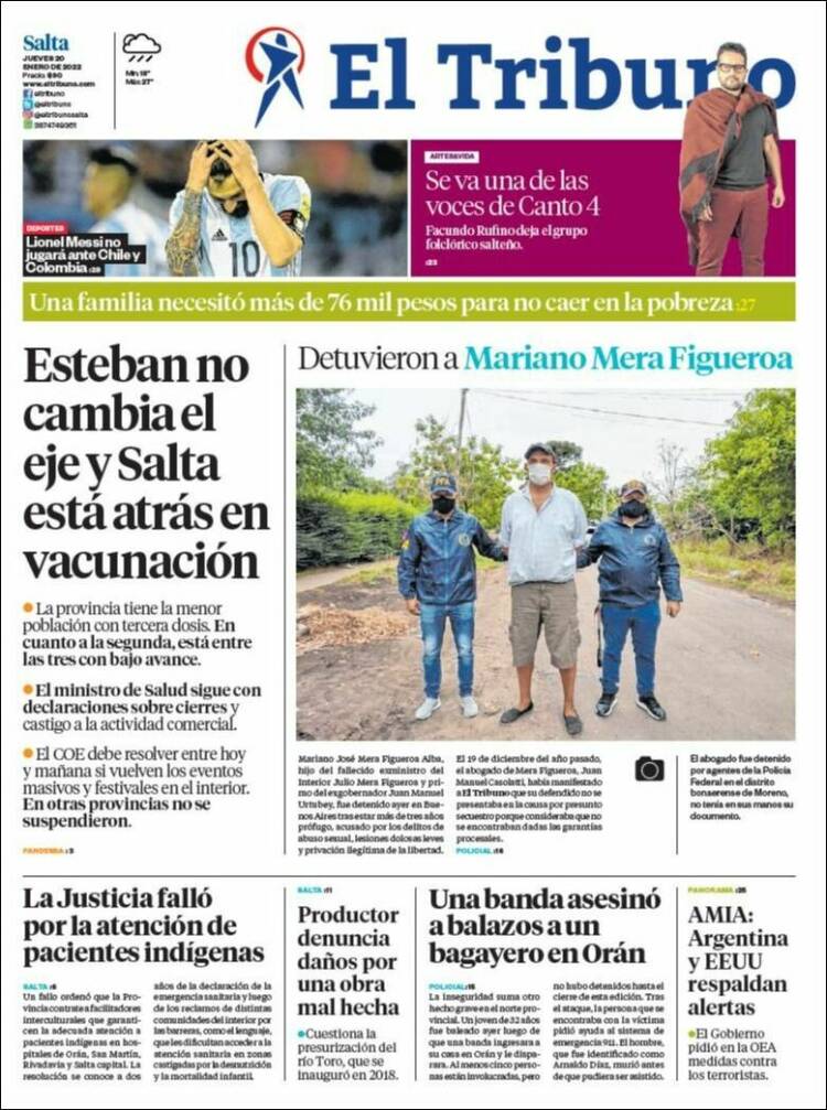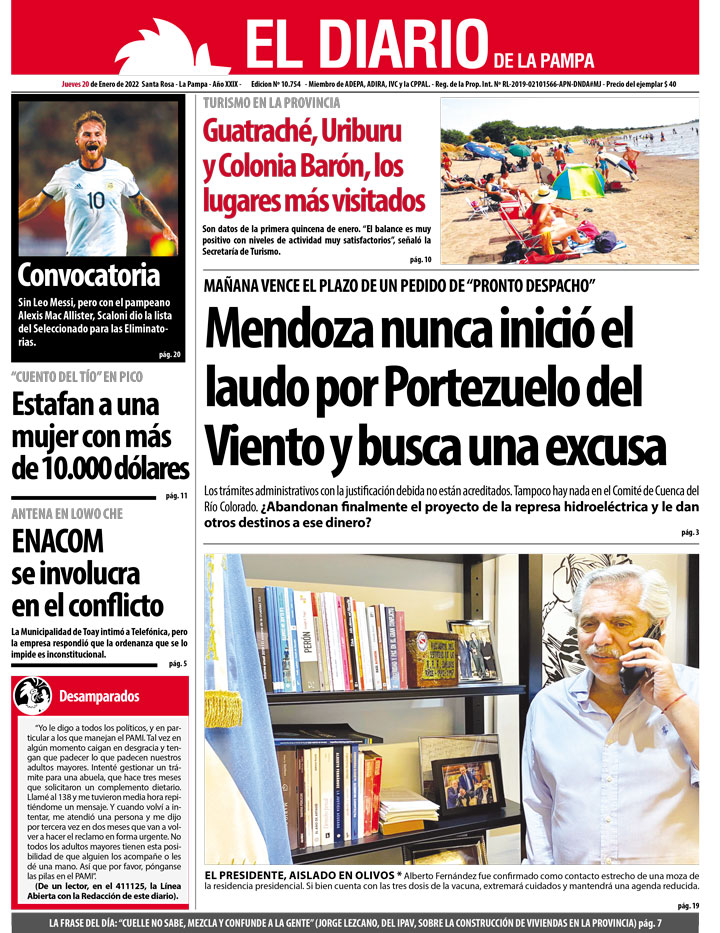 Las tapas de los diarios matutinos de hoy jueves 20 de enero