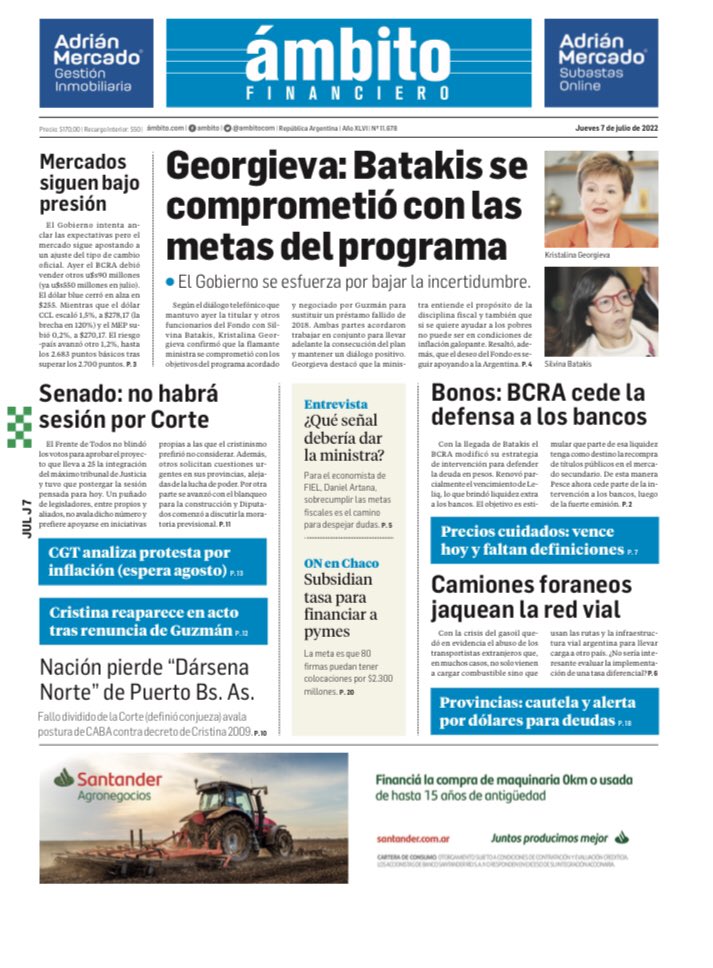 Portadas de los principales diarios nacionales | Jueves 7 de julio