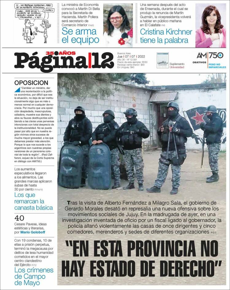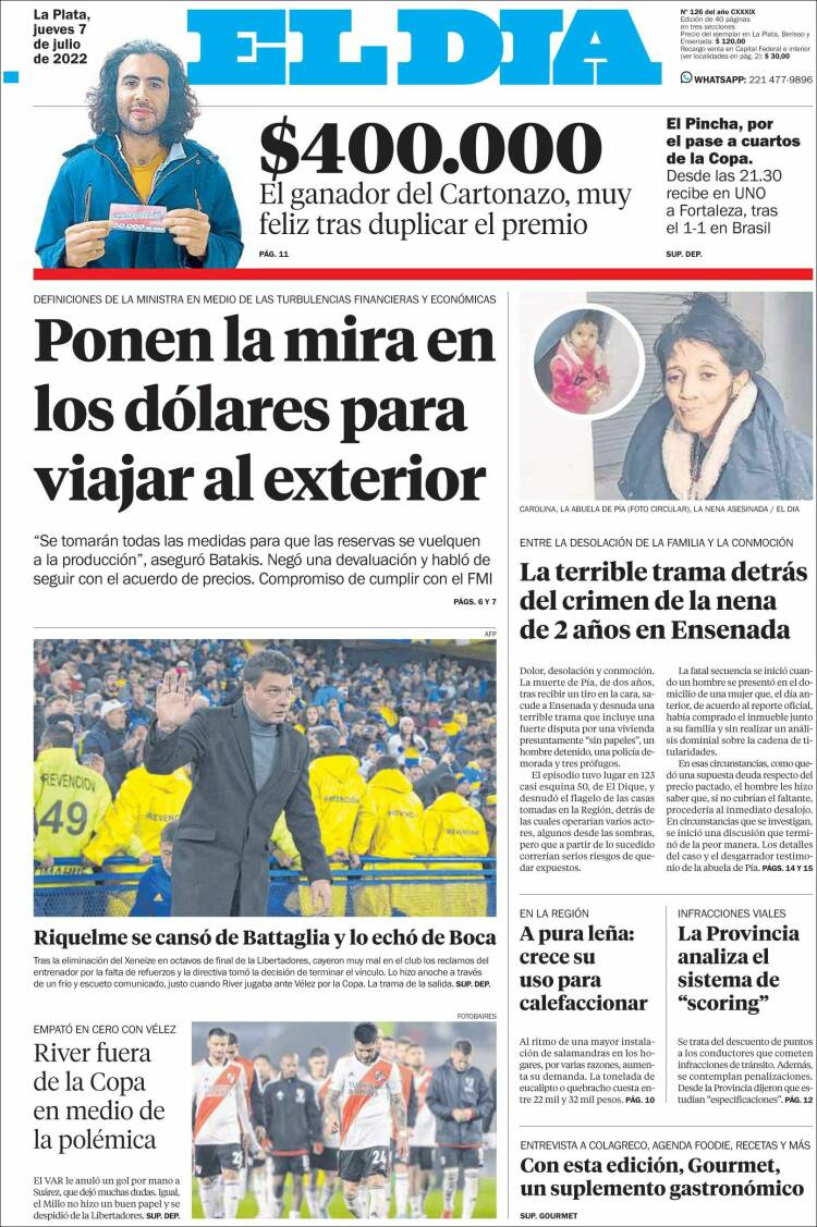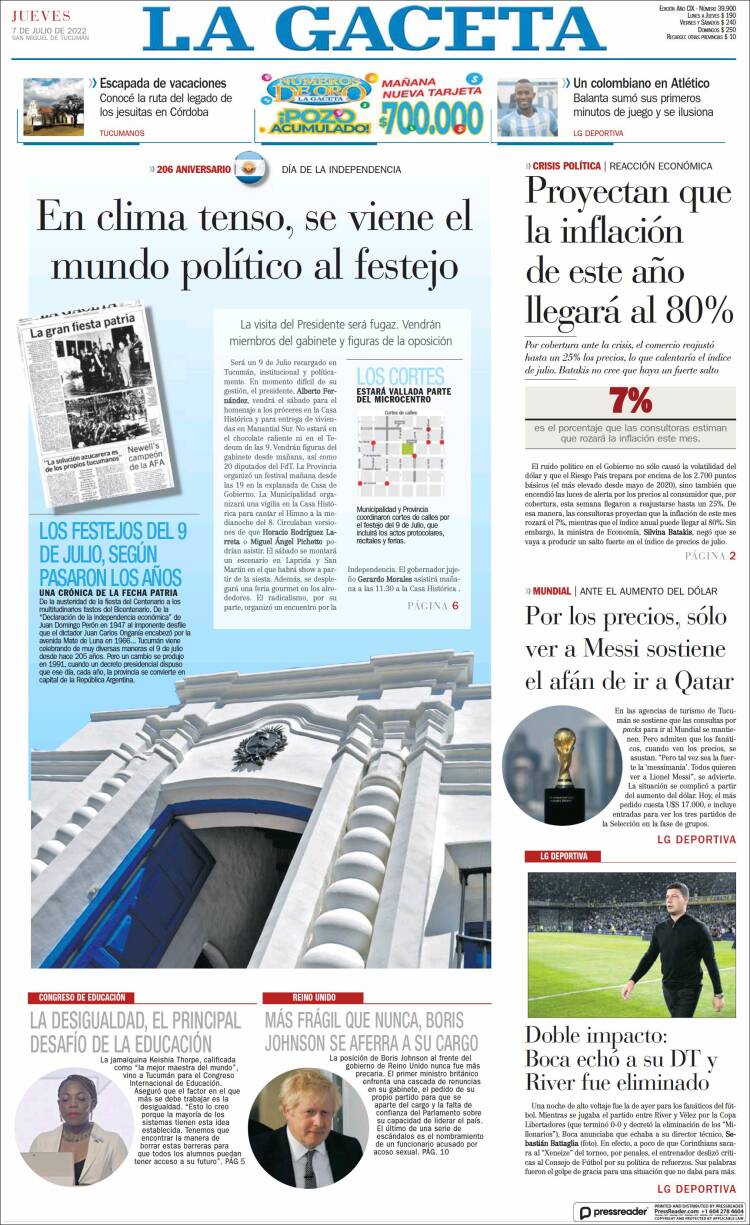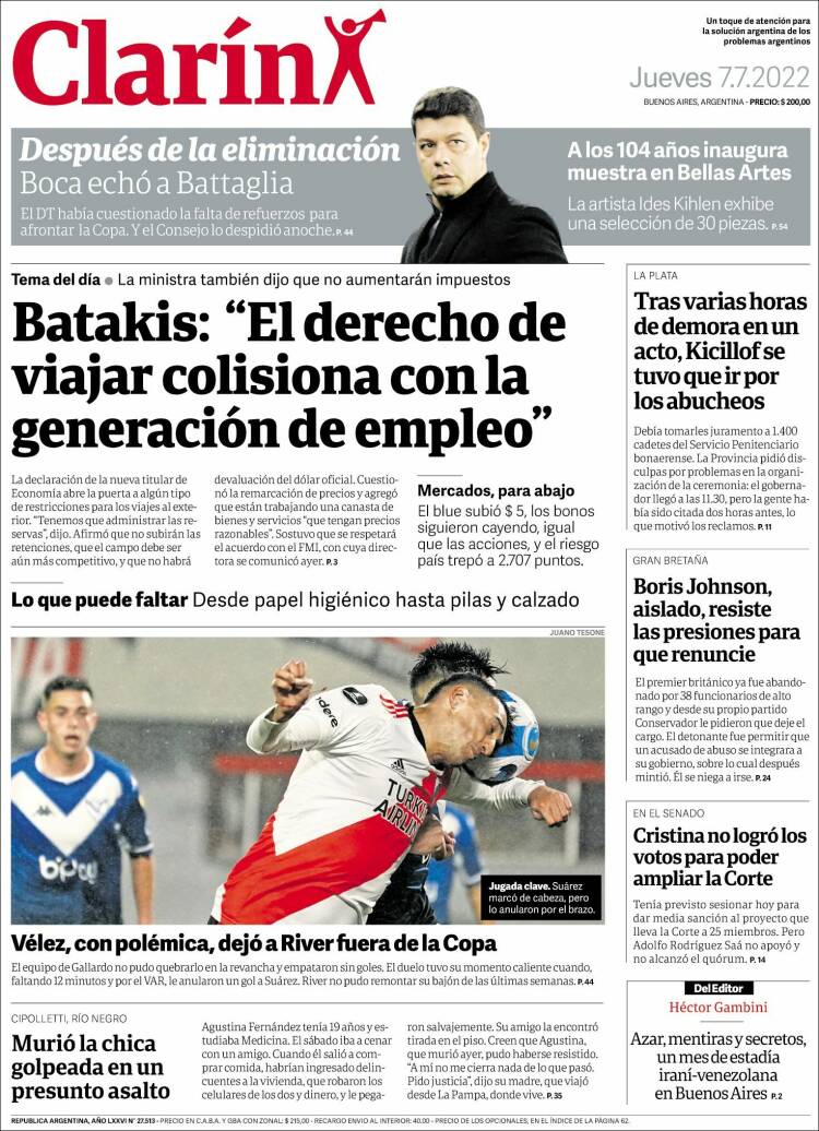 Las tapas de los diarios más importantes del país, de este jueves 7 de julio