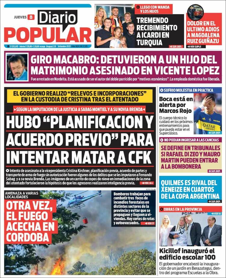 Portadas de los principales diarios nacionales | Jueves 8 de septiembre