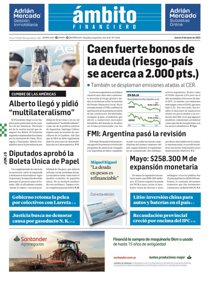 Portadas de los principales diarios nacionales | Jueves 9 de junio