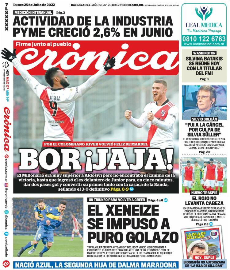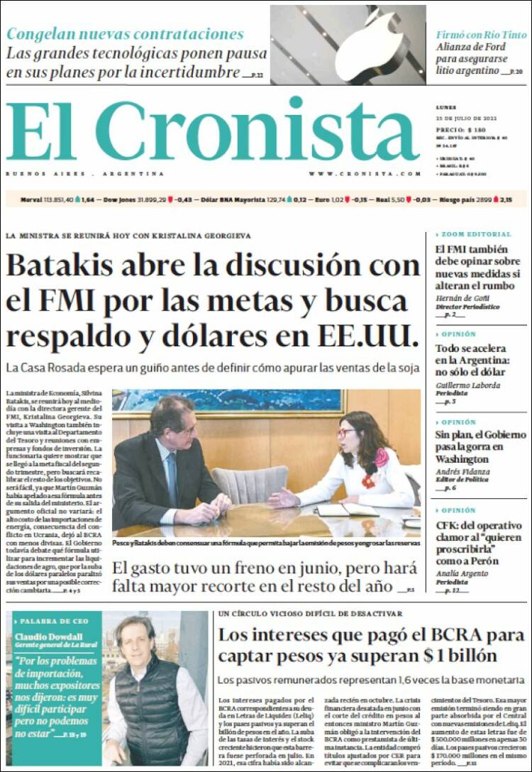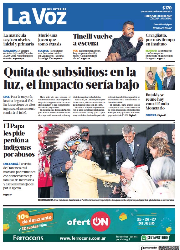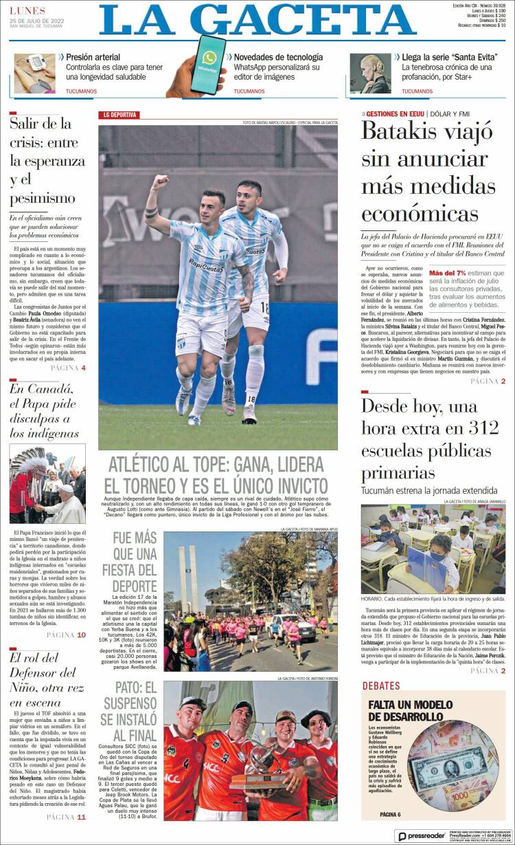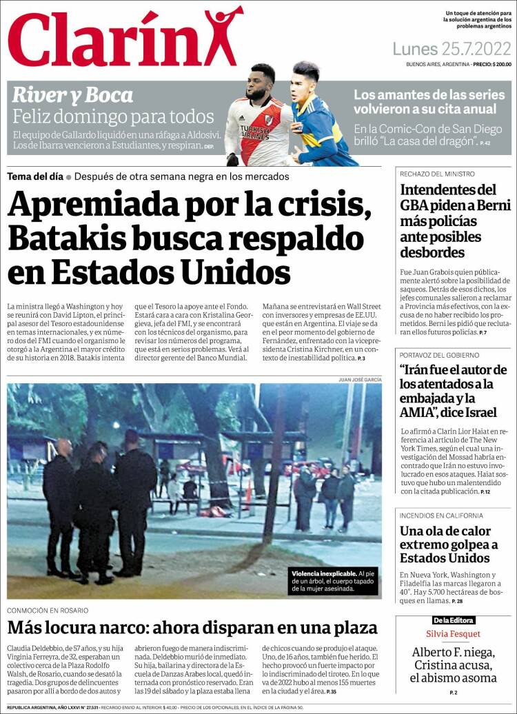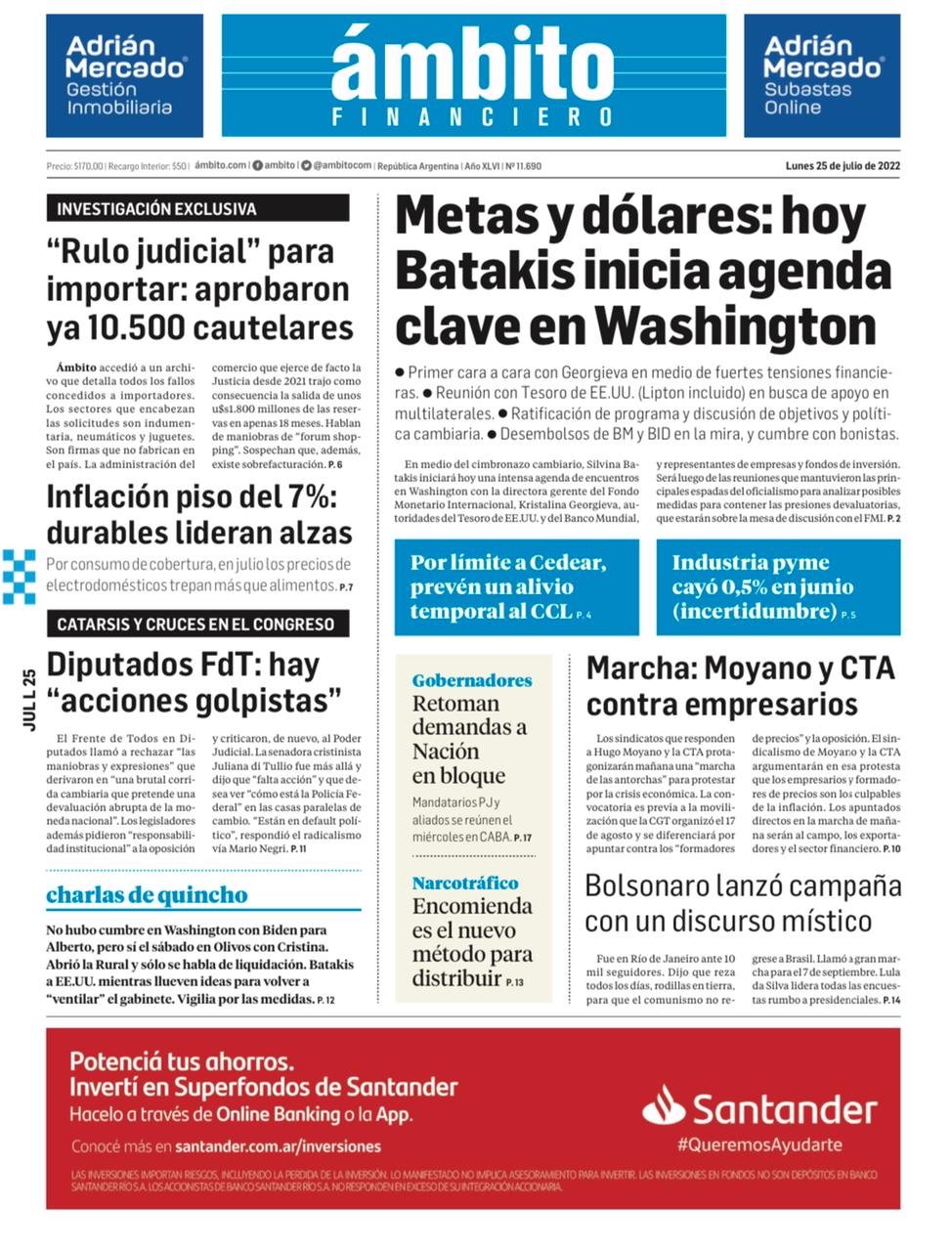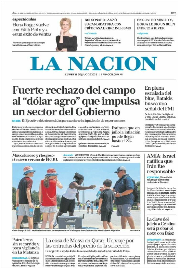 Las tapas de los diarios más importantes de este lunes 25 de julio