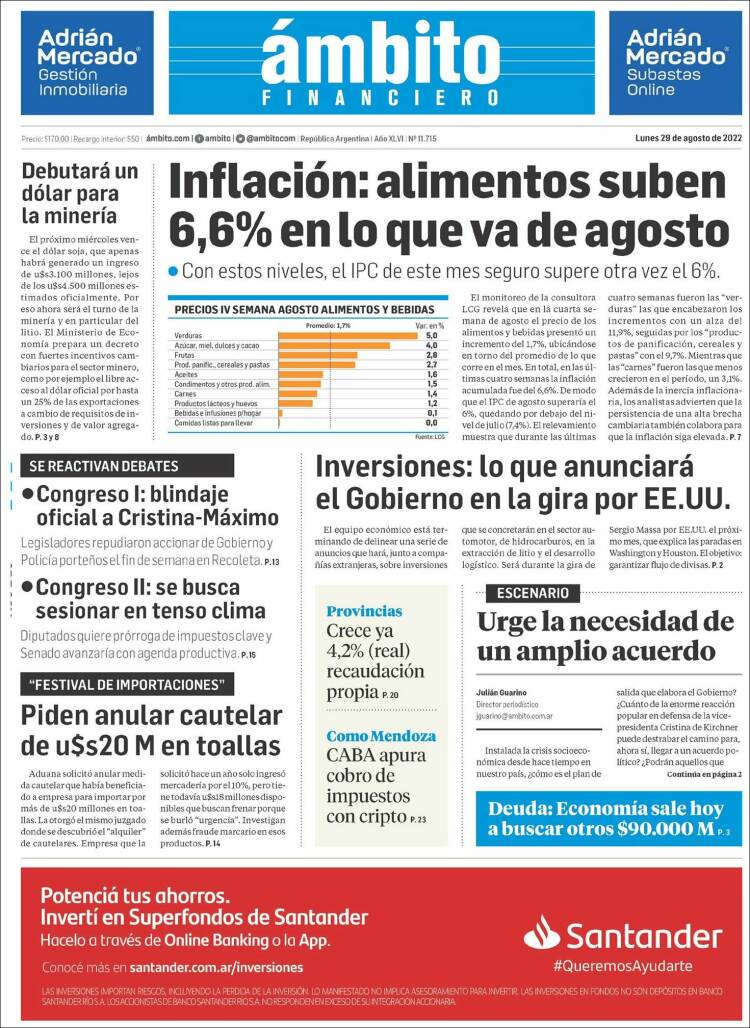 Portadas de los principales diarios nacionales | Lunes 29 de agosto