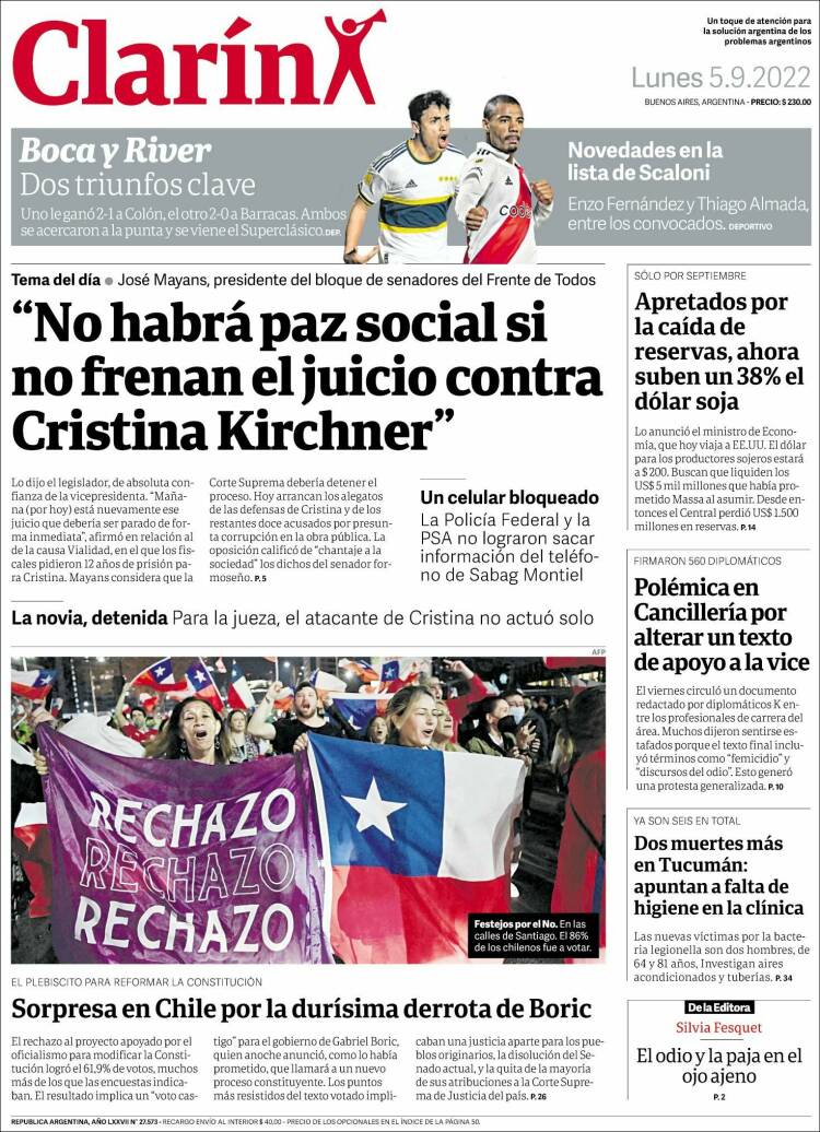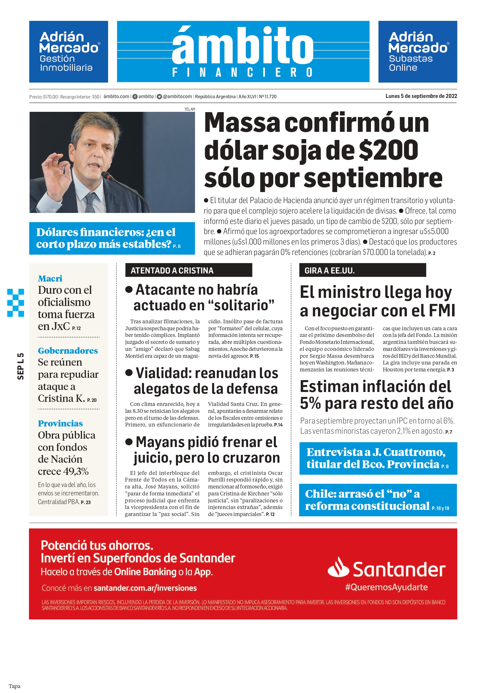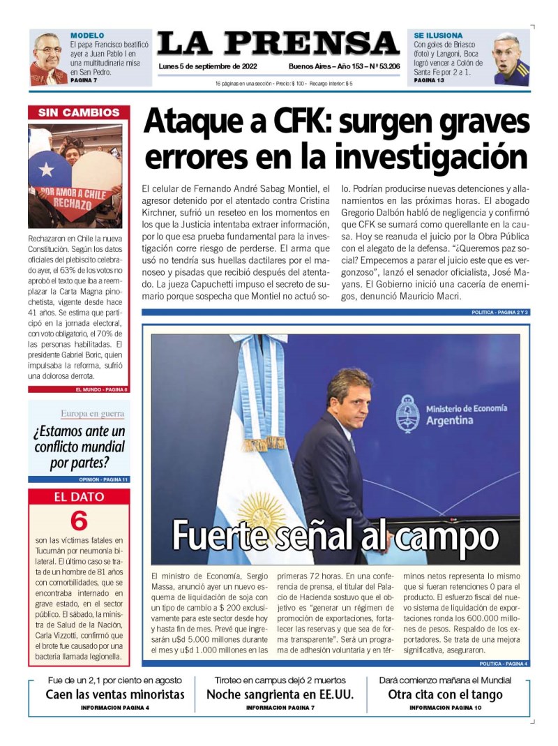 Portadas de los principales diarios nacionales | Lunes 5 de septiembre