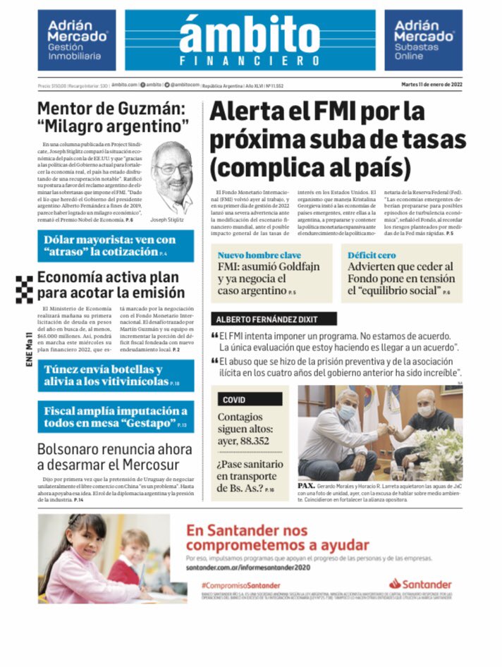 Portadas de los principales diarios nacionales | martes 11 de enero