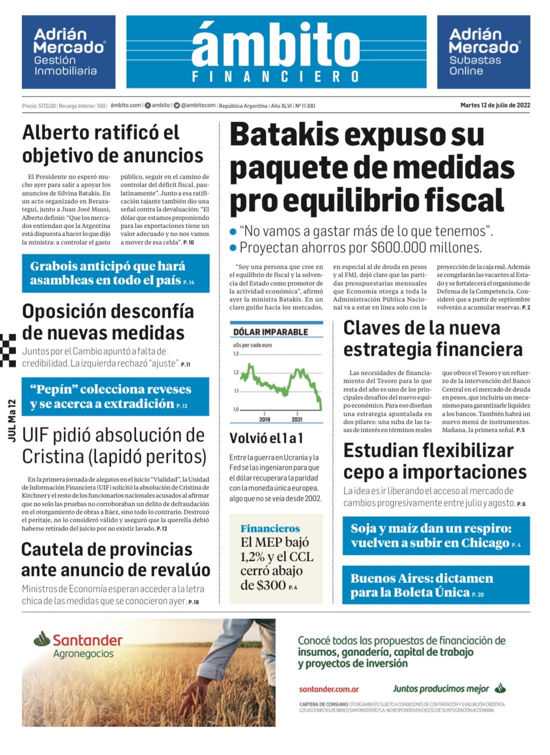 Portadas de los principales diarios nacionales | Martes 12 de julio